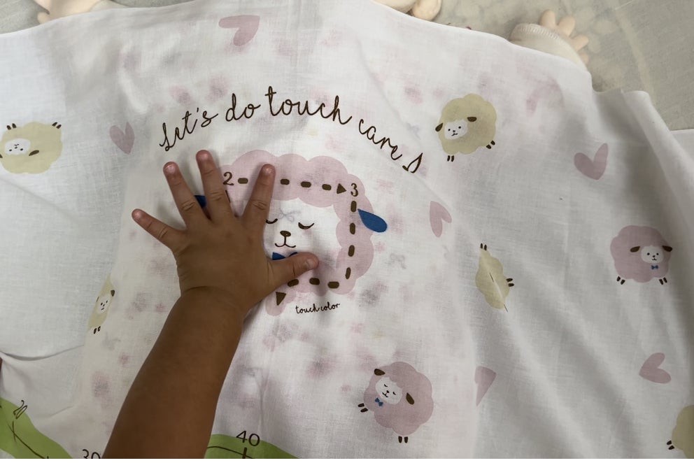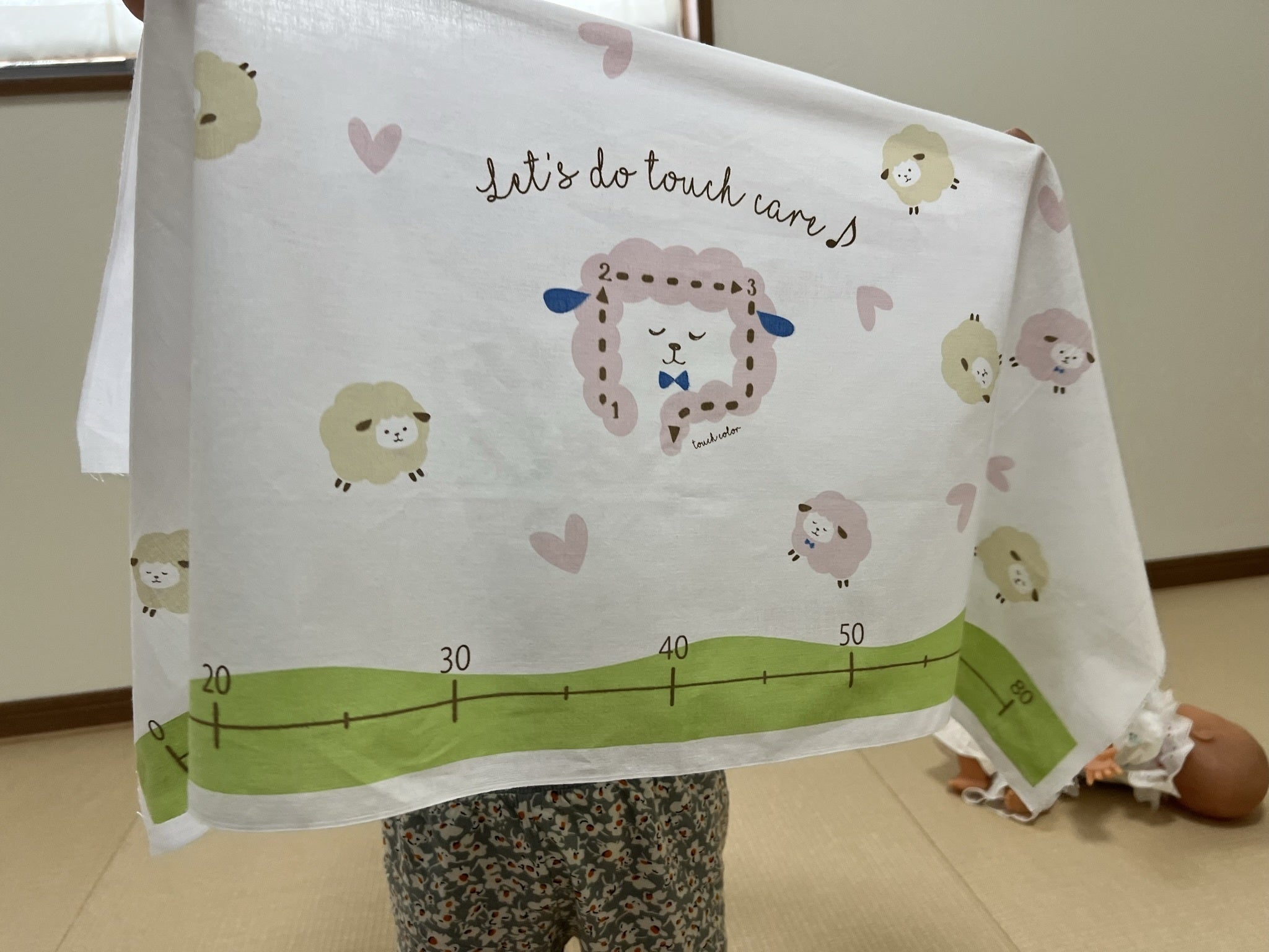 大きな羊さんが真ん中に描いてあるので、そこをおなかにおいてお腹のなでなでも楽しめます。
