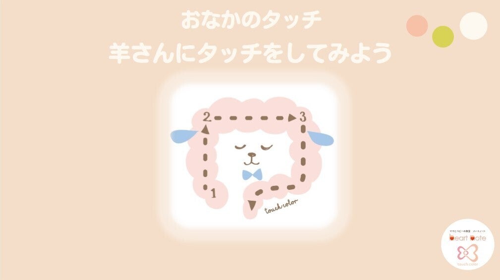 なでなで肌着 羊さんのイラストを使っておなかのタッチの様子を紹介します。