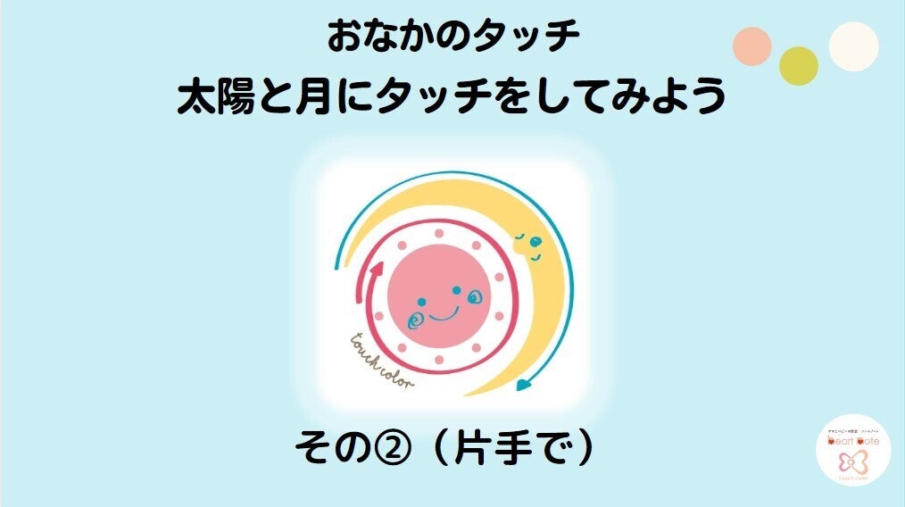 左手で赤ちゃんを支え、右手で太陽と月を矢印に沿ってクルクルとタッチしていきます。