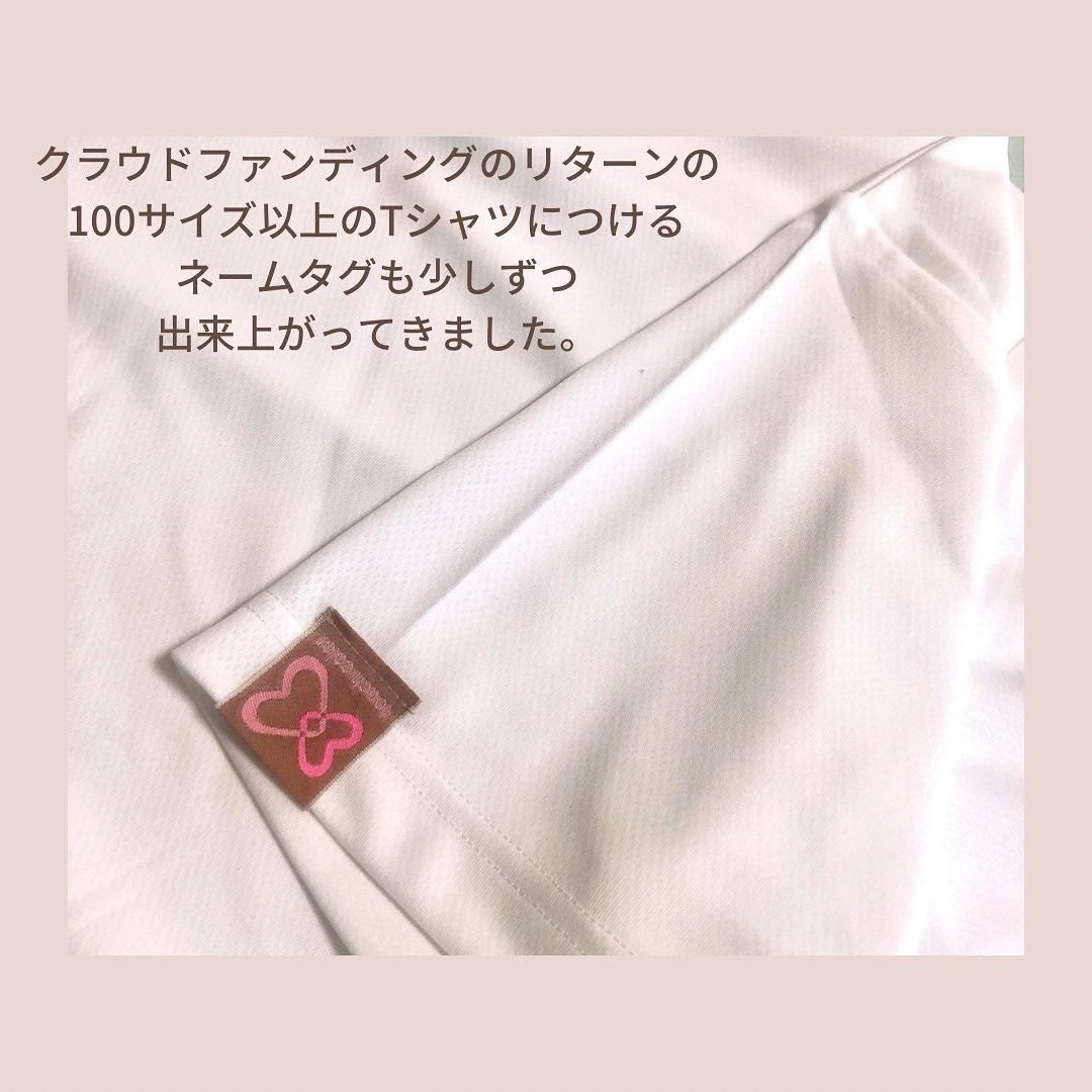 サイズ100以上のティシャツには左袖にこのネームタグがつきます。