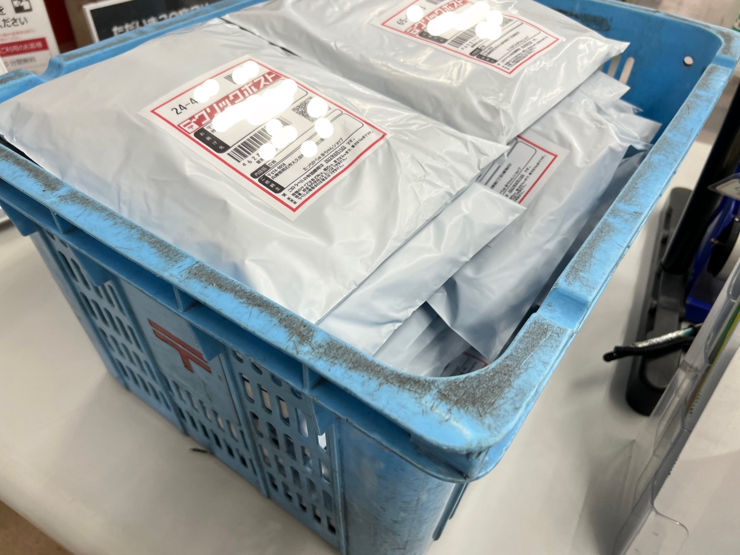 大量の荷物を持って郵便局に行き、発送が完了しました。