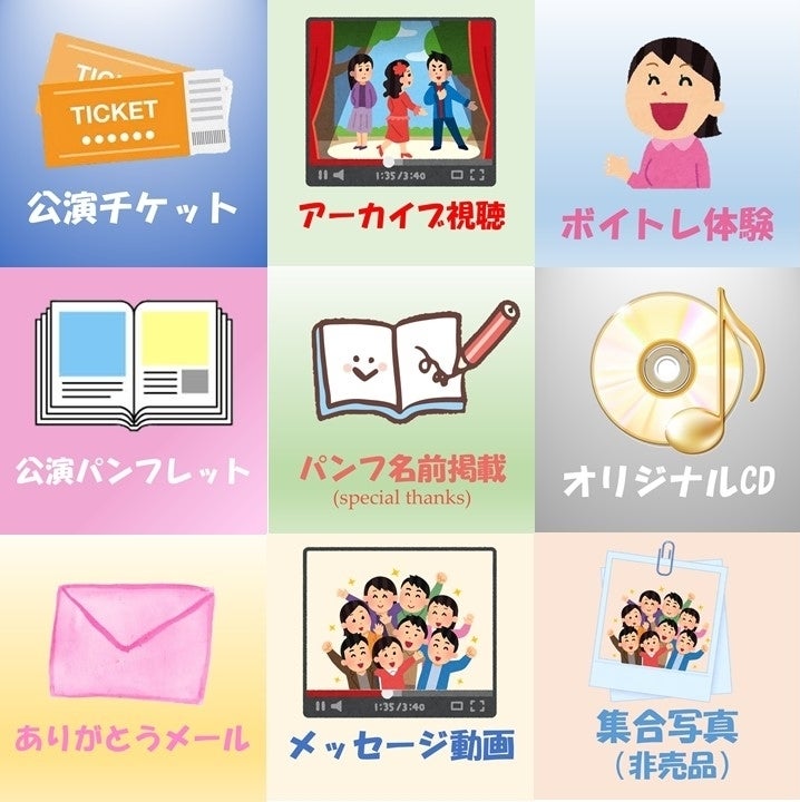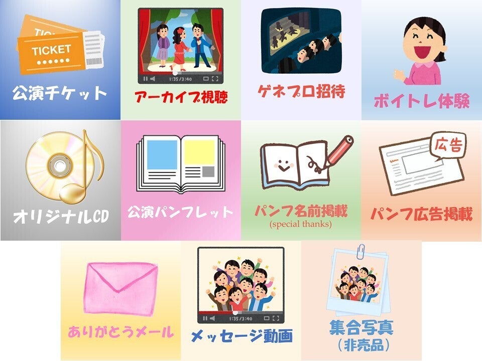 ・集合写真→劇場にてお渡しいたします。応援プランプラス、配信視聴プランA/Bの方は郵送となります。(住所のご入力をお願いします。)