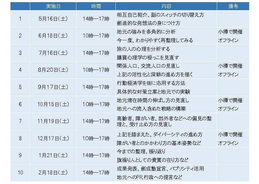 「小樽発の地域復興のためのコミュニティ 創成塾」では、オンラインでの講義だけでなく、小樽に来てもらって全国大会を開催したいと思っています。