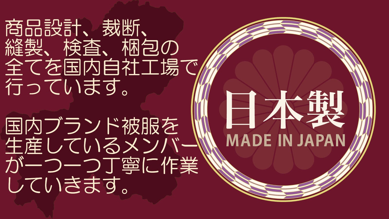 商品設計、裁断、縫製、検査、梱包を全て国内工場で行います。