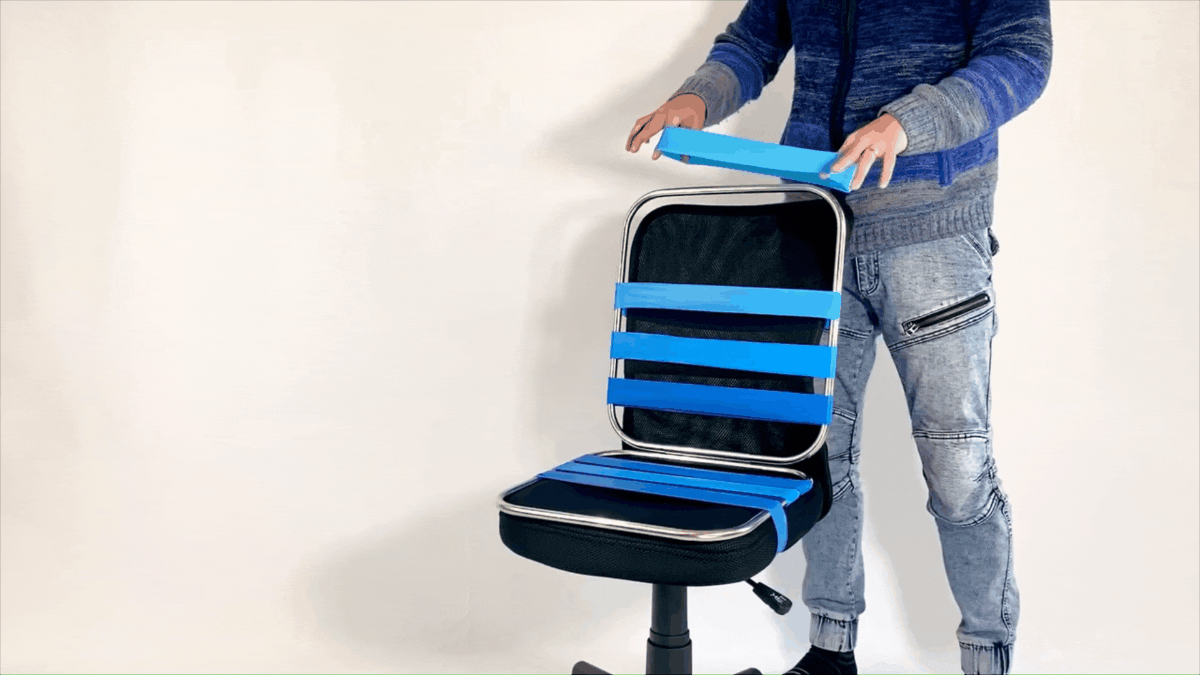 特別な椅子を用意しなくても、ご自宅やオフィスで今お使いの椅子に装着するだけで使えます。「筋トレ1分」の中で力学的には完結しますので、椅子には何ら負担がかかりません。