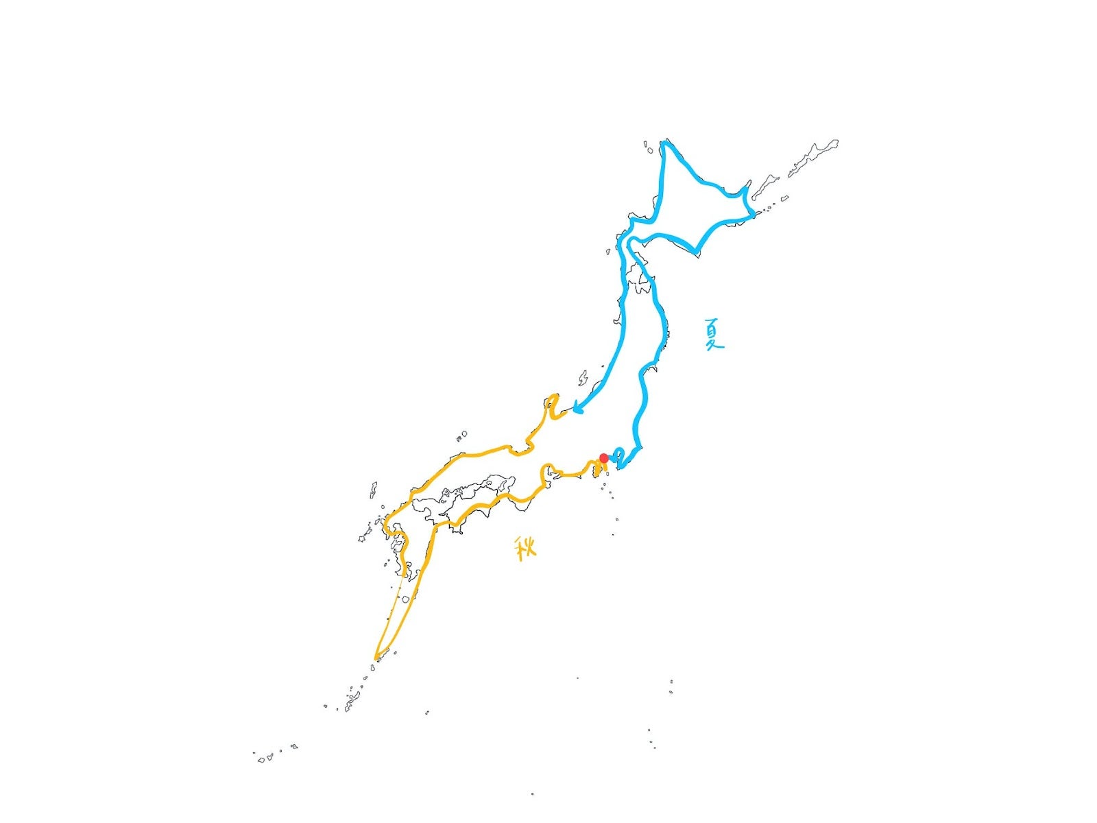 ルートは、関東を出発し、海沿いを反時計回りに進む予定です。