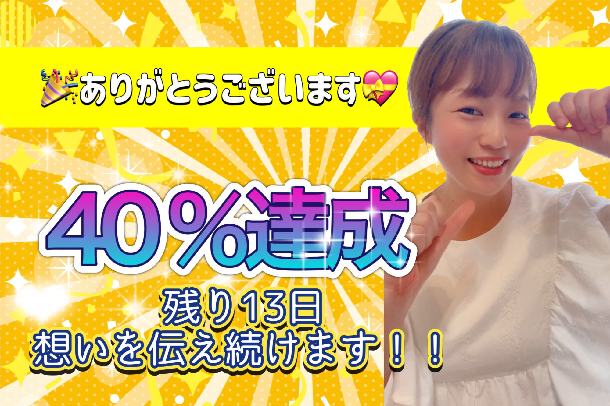 おはようございます!運動会シーズンも終わり、長袖や羽織がないと寒い季節になりましたね。前回のお知らせから日が経ってしまいましたがご報告させていただきます!11日時点の達成報告ありがたいことに40%達成中です!!!本当にありがとうございます!!!現状、たくさんの方にというよりお一人の方にいくつものリターンをご支援いただいている状況でして、大きな愛をたくさんいただいている次第です。応援コメントもいつもありがとうございます。みなさんの思いがここまで大きくなって、私一人だけじゃなく防音室を楽しみにしてくださっている気持ちもとても嬉しいです。人気のリターン1位、子供達へのお菓子のリターン2位、応援ボイス・ラバーバンド3位、オリジナルTシャツ選んでいただいてありがとうございます!その他も思いのこもったリターンなので選んでもらえて嬉しく思っております。クラファンも後半になり、リターンをする時期も来ますが準備にワクワクしております^^数量限定のラバーバンドは、現物見ればリターンしておけば良かったと思う方いると思うのでもっとアピールしていきたいと思います♪数量限定は、売り切りたいので頑張ってみます!サイトのアクセス数ここは反省点です!!!アクセス数が、なかなか伸ばせないでいます。どうしてもクラファンの中間期間というのは伸び悩んでしまうところではあるので、私の考えといたしましては今までどうり宣伝をし、まずは「クラファンやっているんだ」という認知と「まだやってるんだ」という興味づけという期間に十分当てたいと思っております。というのも、いきなり「後3日です!!」と言われても「何それ?」となると思うので、「認知」→「応援できるラスト期間なんだな」と思ってもらえたらと思っています。きっとこの期間があることでラストスパートが活きてくると思っています!こういう宣伝やアピールって、正直手探りなのでこれが正解かどうか分かりません・・・。もし、ご意見あればぜひ聞かせてください。今後の活動内容今プライペードのゴタゴタを処理している段階でおろそかになっている活動報告のペースを整えたいと思います。私もしっかり噛みしめていきます!!!そして、まだ日は確定していませんが、カラオケボックスを使って少しでもライブ感のある宣伝方法で思いを伝えたいです。子供達の体調もいい感じなので、早いタイミングで行いたいところではあります。今週できれば決行したいです!!まずはできるところをしっかりやっていき、成果に繋げたいです。どうぞ宜しくお願いいたします。先日行った防音室の報告もまたさせていただきます。そして、いつもお見守りくださり応援ありがとうございます。