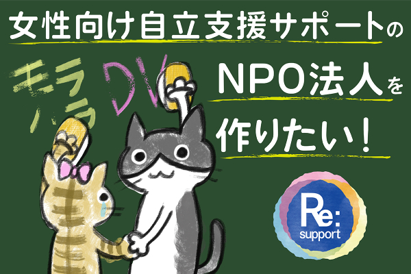 今回のプロジェクトでは、モラハラで苦しみ、金銭的な余裕もない女性が無料で相談・サポートを受けられるNPO法人Re:support(リサポート)を作るために立ち上げました!