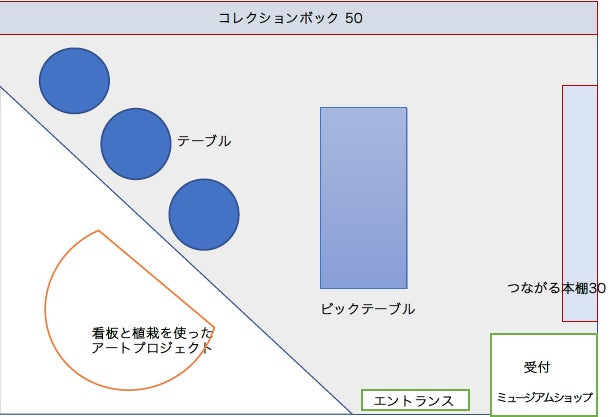 ※ 下の図のエントランスから入って奥のコレクションボックス50のところが、今回の本棚を置くところになります。