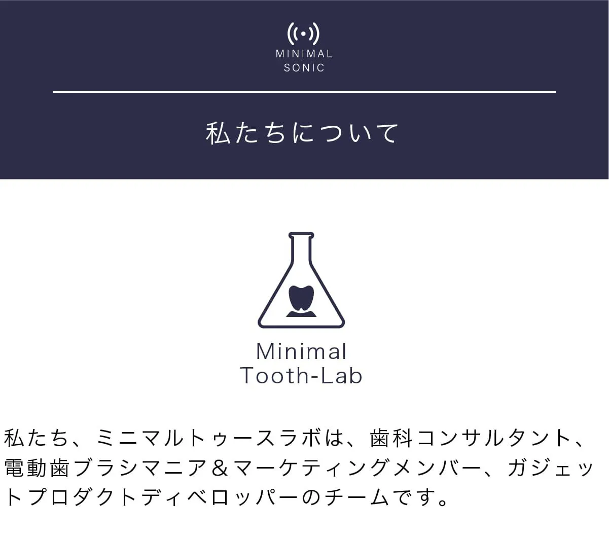 私達は日本の電動歯ブラシ普及率22%をなんとかしたいと考え、ミニマルソニックを誕生させました。口腔内のケアは大変重要なものであるにも関わらず、そのツールの進歩はまだまだです。ミニマルソニックが少しでも日本の電動歯ブラシ普及のきっかけになれば大変嬉しいです。