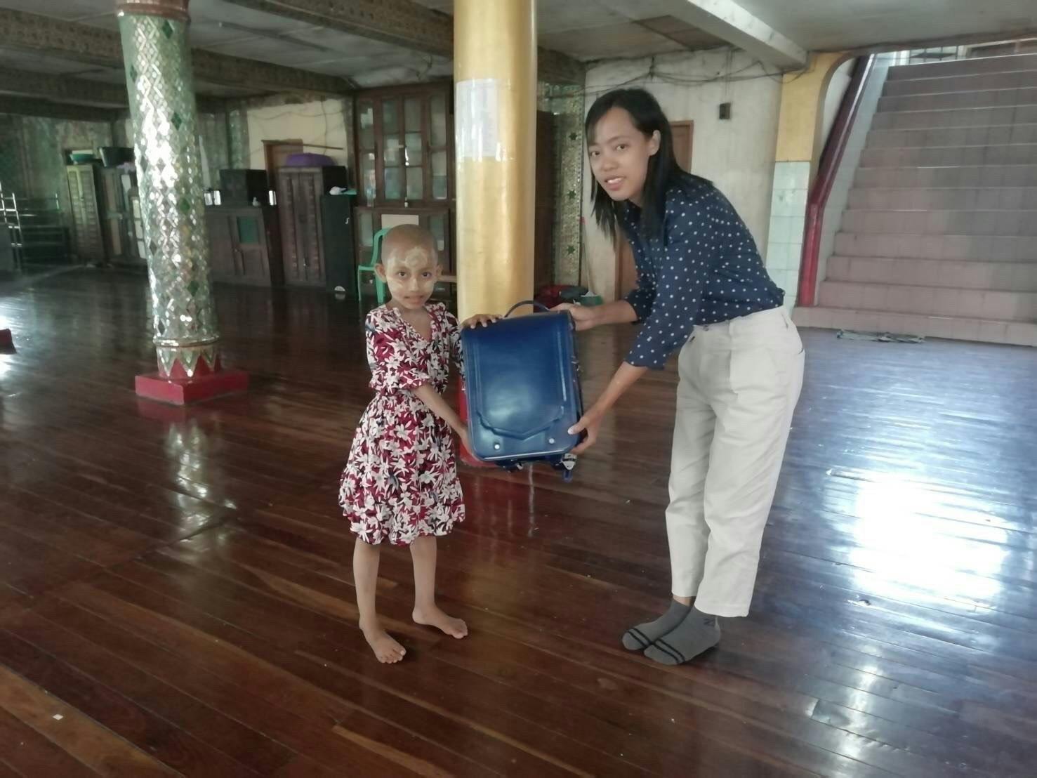 ミャンマーのヤンゴン市内にある寺院(孤児院兼学校)の名称/所在地は、Myittar Wardi Hinthada (parahita) Monstery/No.6, Baho road and Marlar Myaing 10 street, 16 Ward, Hlaing Township, Yangon.こちらの寺院のお住職さまが献身的に保護している子ども達に、私たちコアメンバーと現地スタッフ(現地サービスアパートメント&ホテル「7 mile」)が、責任をもってお届けします。