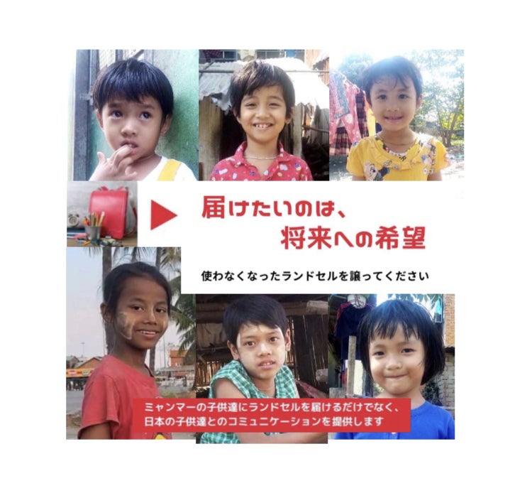 遠い日本からきれいなランドセルが届いたら、ミャンマーの子ども達も「自分達は見捨てられていない。遠い場所で、自分達のことを考え、手を差し伸べてくれようとする人がいる」と生きる希望を持つことになるでしょう。私たちの出来ることは少しかもしれませんが、何もしないよりはずっと、明るい未来を届けることができると信じています。私たちにできる支援を形にし、継続した活動に育てていきたいです。