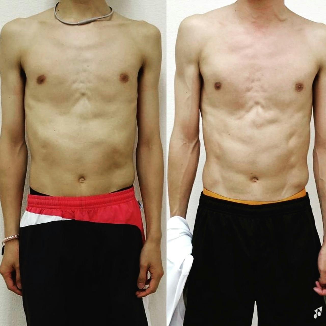 筋肥大させるバルクアップトレーニング(ベンチプレス・スクワット・デッドリフト・アームカールなど)を高負荷低回数で行い、自宅ワークアウトや食事アドバイスなどを含めた12回のトレーニングで、腕が太くなり、肩回りが大きくなりました。腹筋が割れ、少しウエストも締まってきました。