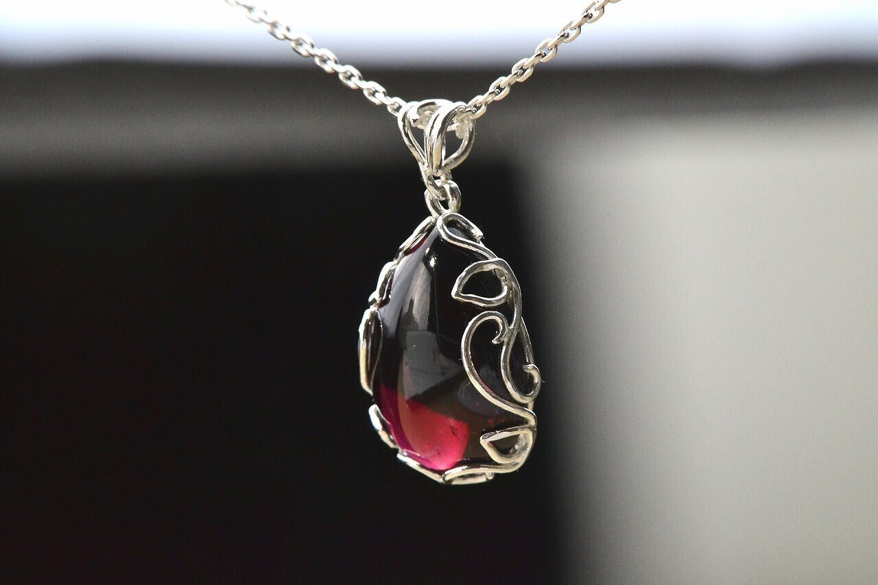 光が当たらなかったら普通のガーネットだが、一瞬でも光線が通ると、ローズレッドの灯りをその向こう側に映す。
