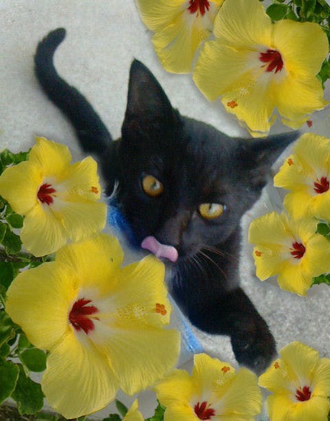 画像の黒猫は、野良猫のお母さんから産まれた子供です。