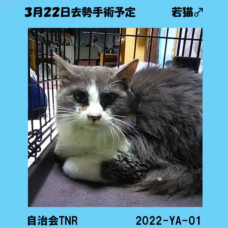 明日の手術が終われば地域猫の仲間入り、抗生剤の投与が終わったらリリースします。