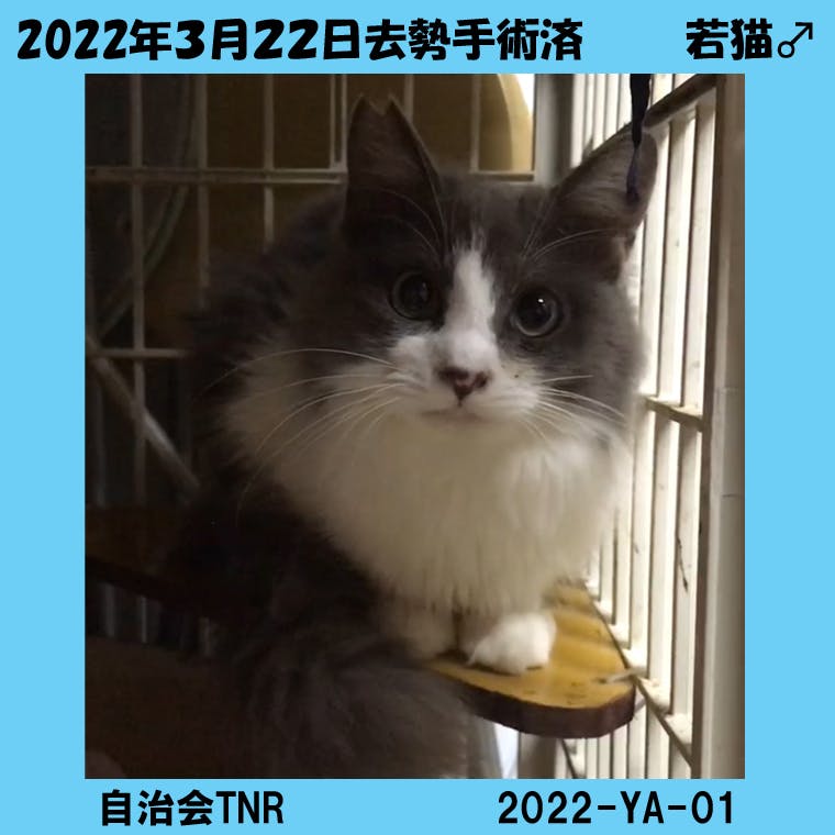画像の猫はオスなので、22日に手術完了、23日から25日までの3日間投薬、26日にリリースとなる予定です。