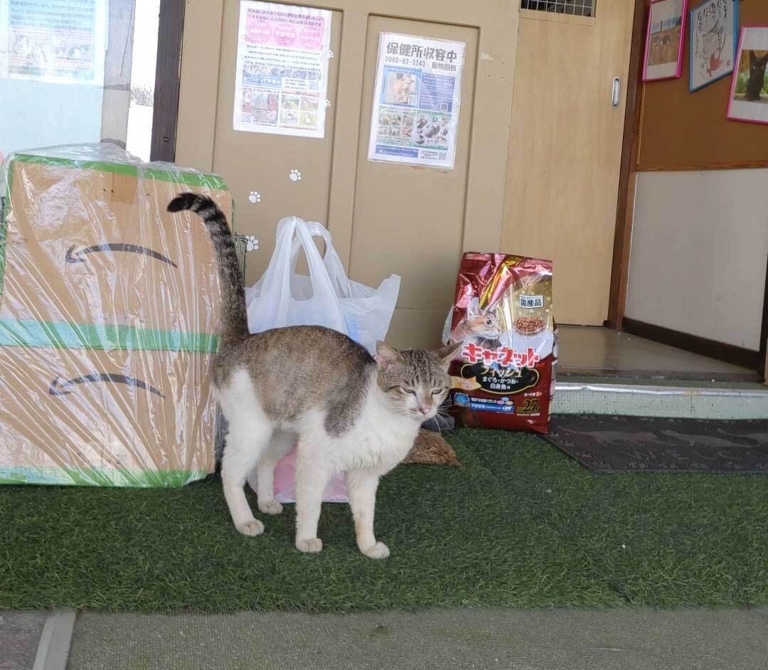 施設の扉は二重になっており、内側は閉めているので野良くんは入れない。