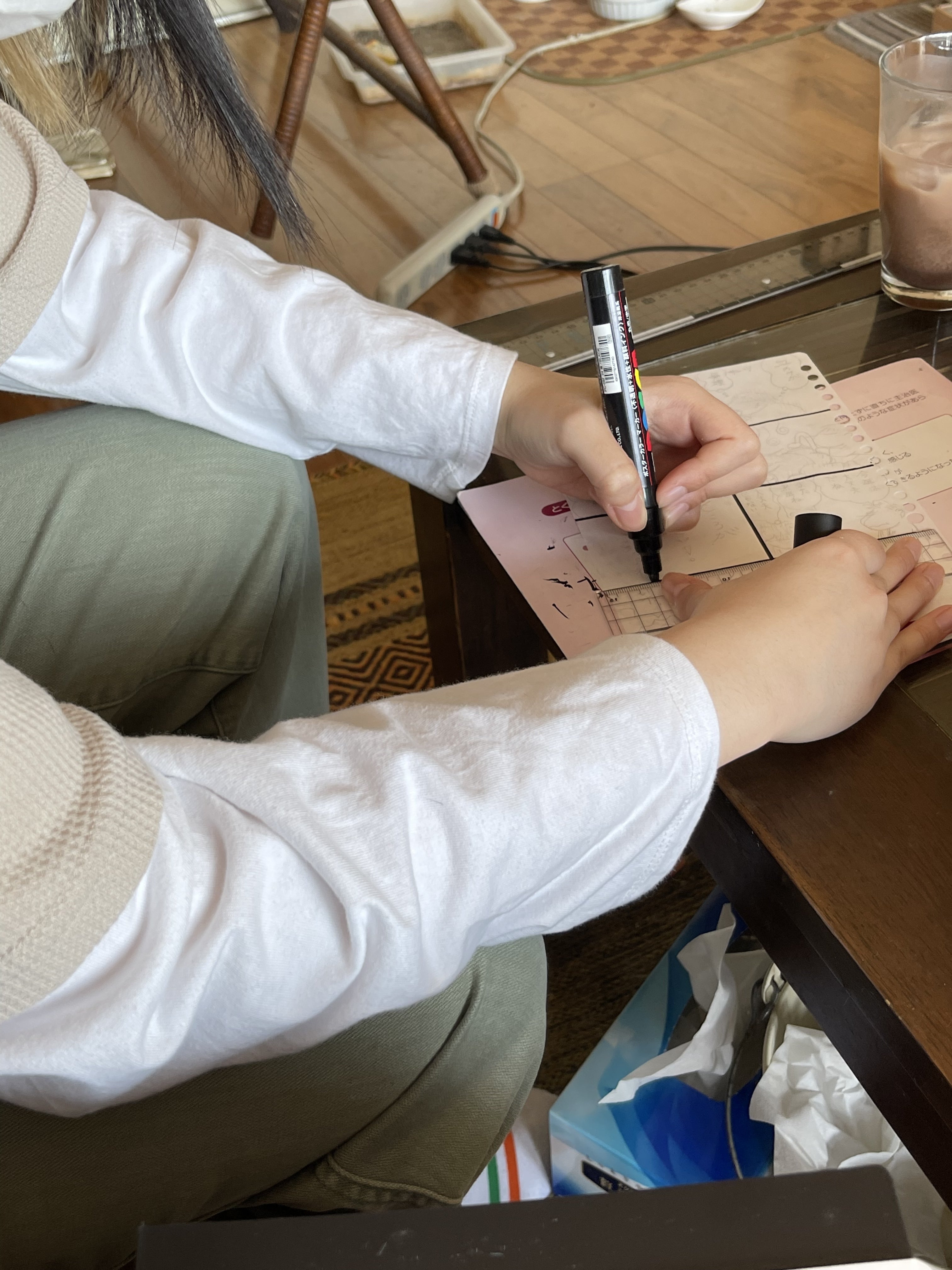 真っ直ぐの線を引くのは苦手と言いつつ次々と枠線を引いてゆきました
