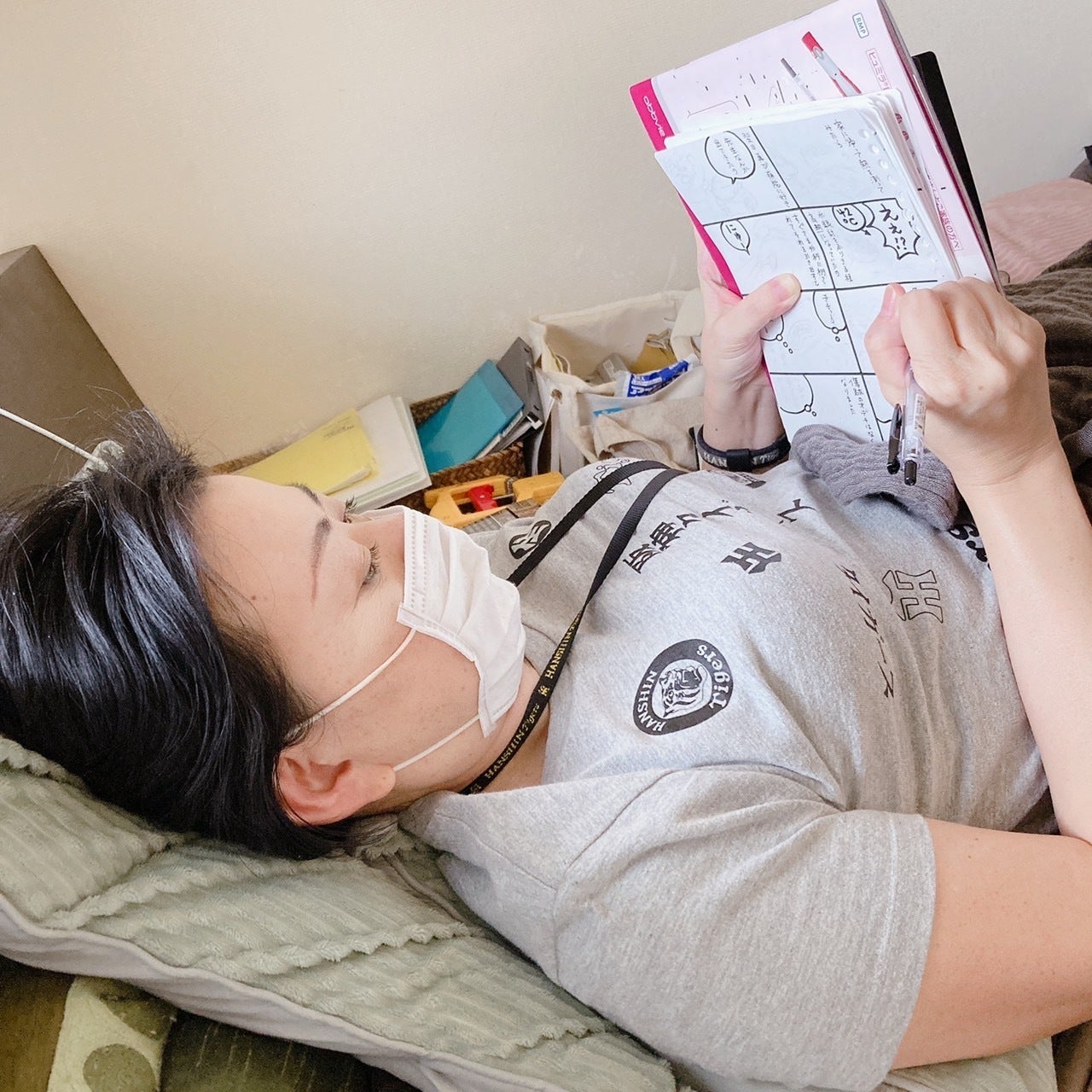 起き上がっていられないたぢまは、こうしてまんがを描いています