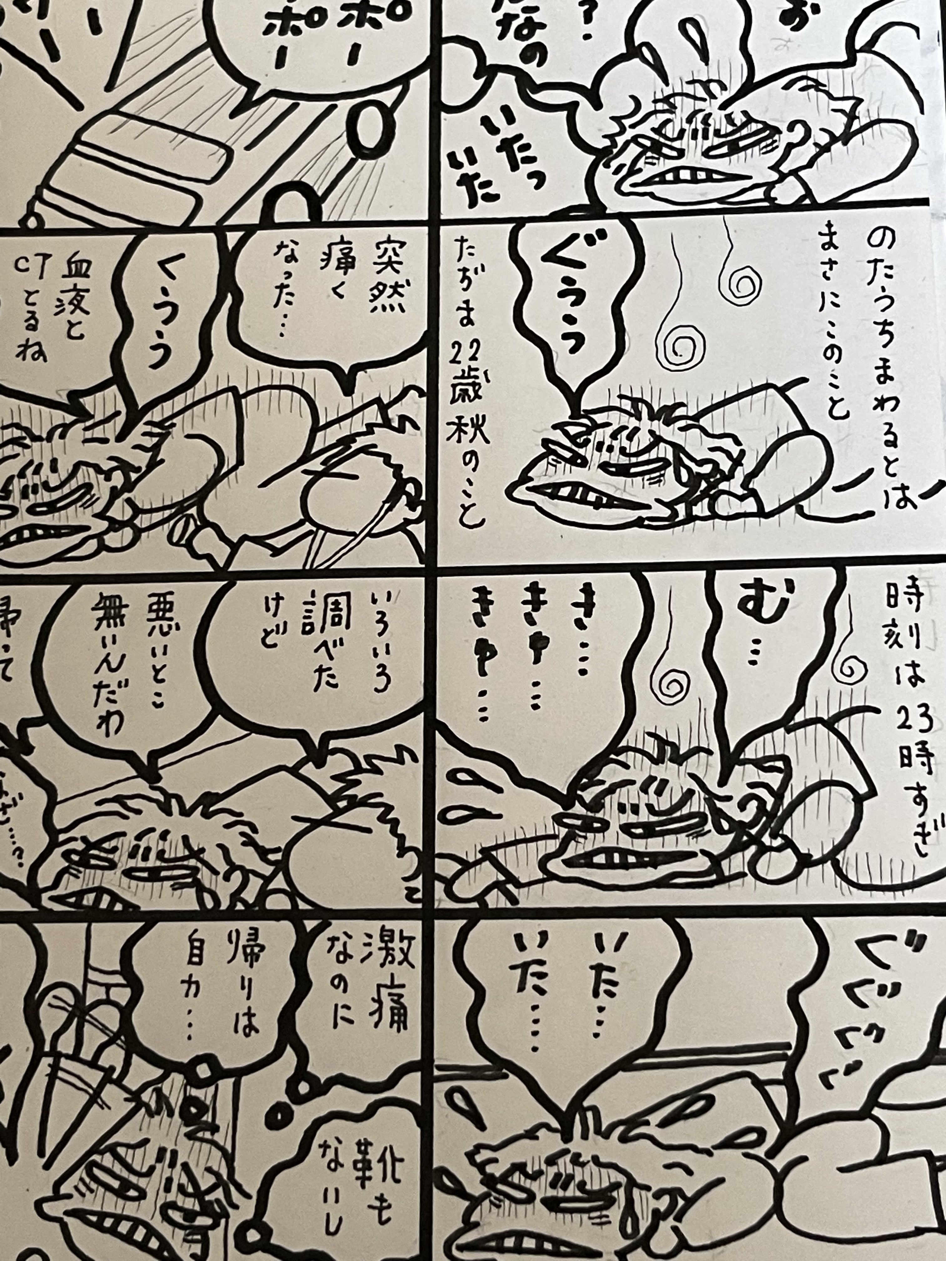 脊椎関節炎のたぢまは関節部分に炎症がおきるので、手が痛いです痛いのですが動かすことが大切なので、まんがを描くこともリハビリ代わりですまもなく序章…既に始まっていた異変 編 の最後までの下書きが終了します卒倒…病院たらい回しじやん 編 はペン入れを開始いたしました少しずつ話がつながっていっています脳脊髄液減少症の診断のくだりまで一気にかきすすめたいと思っていますひとりでも多くの方にお読みいただきたい作品です