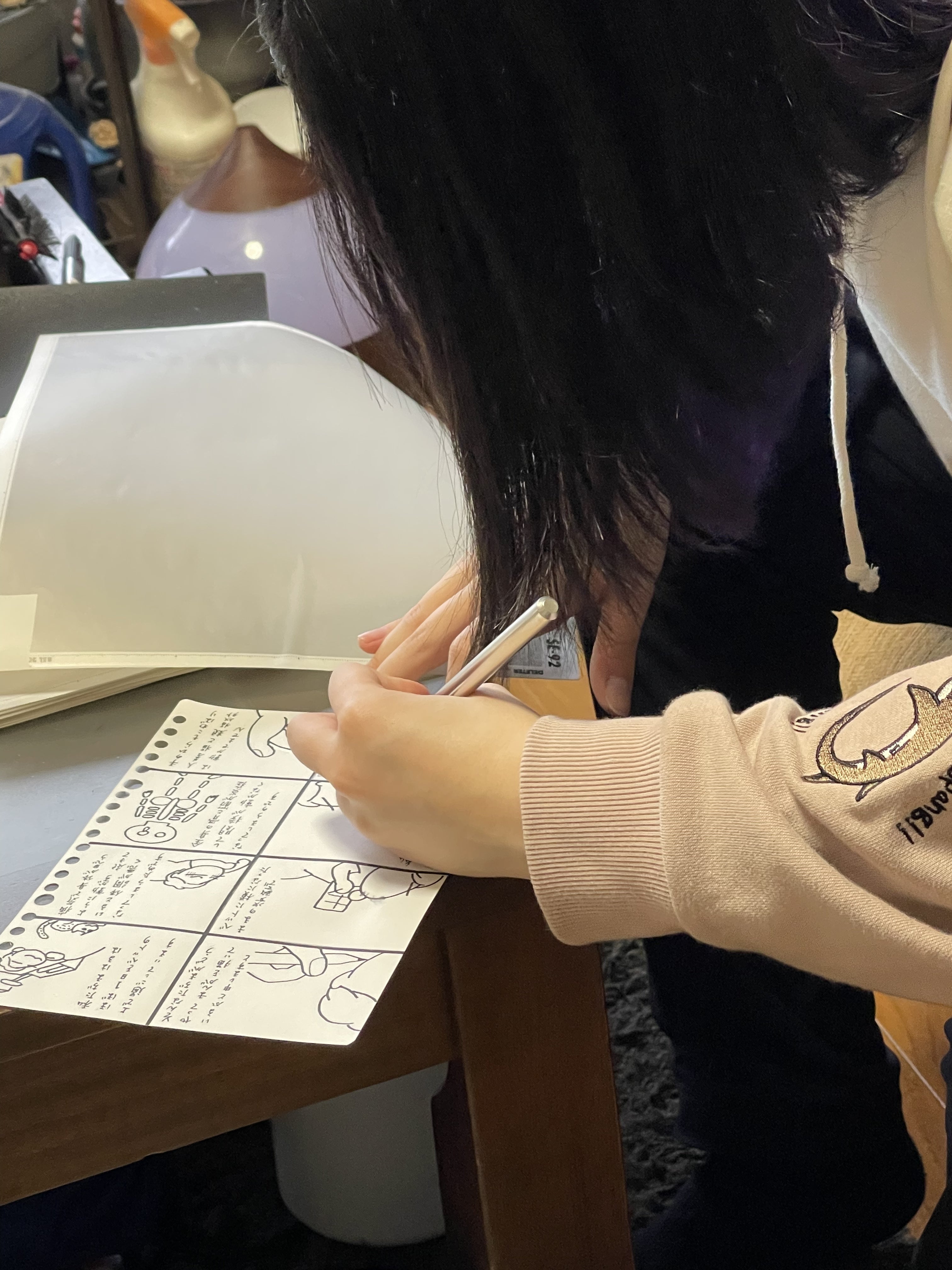 今日はアシスタントの『みく』が来てくれました生まれて初めてのスクリーントーン張りに挑戦細かい作業に格闘しています