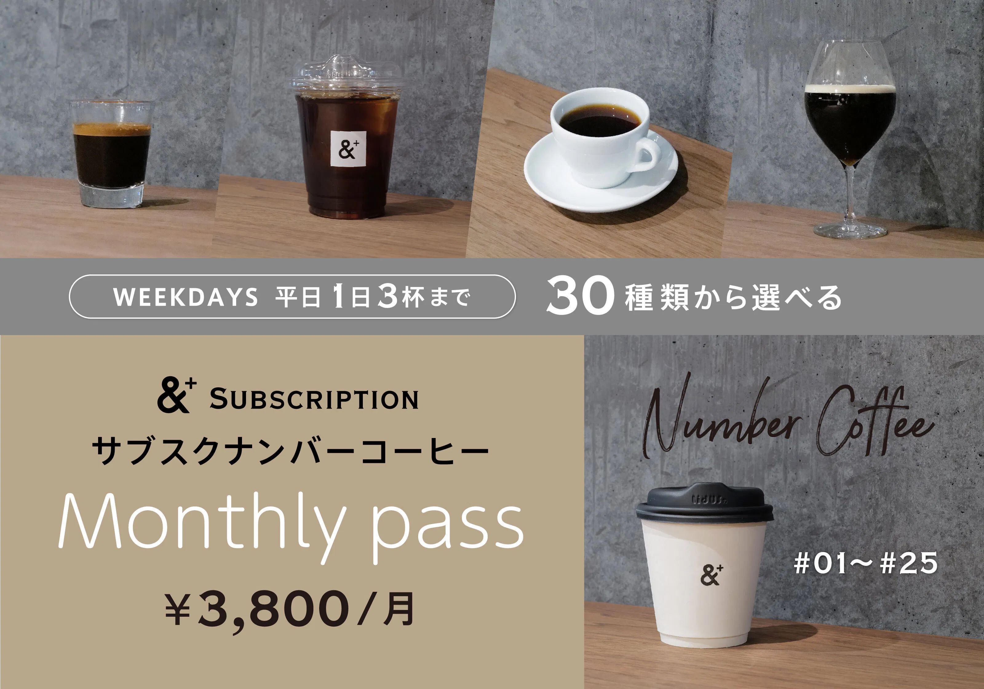 ●3,800円 【1ヶ月お試し】サブスクナンバーコーヒー マンスリーパス