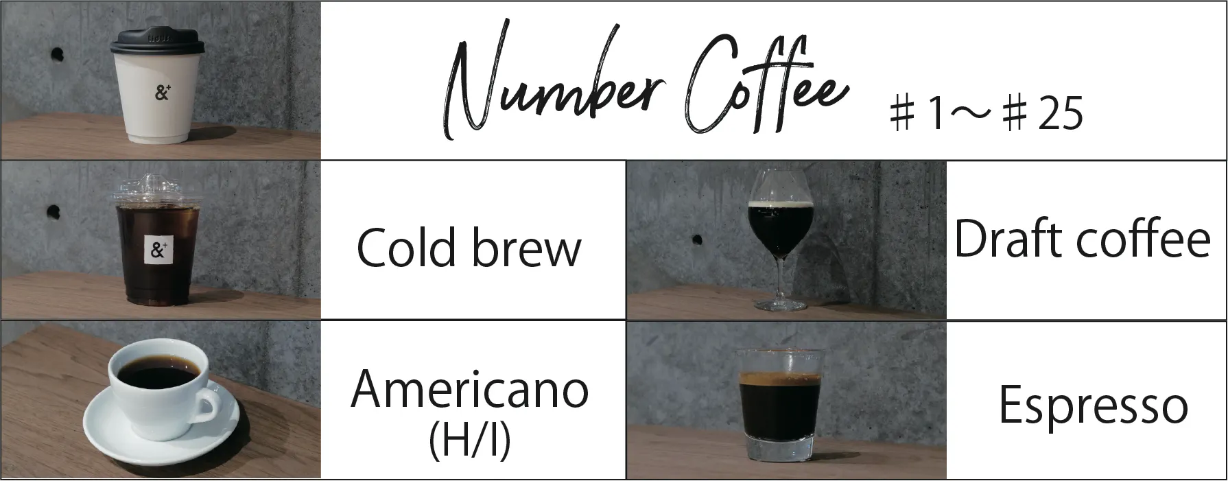 「サブスクナンバーコーヒー」では、以下のメニューがお楽しみ頂けます。