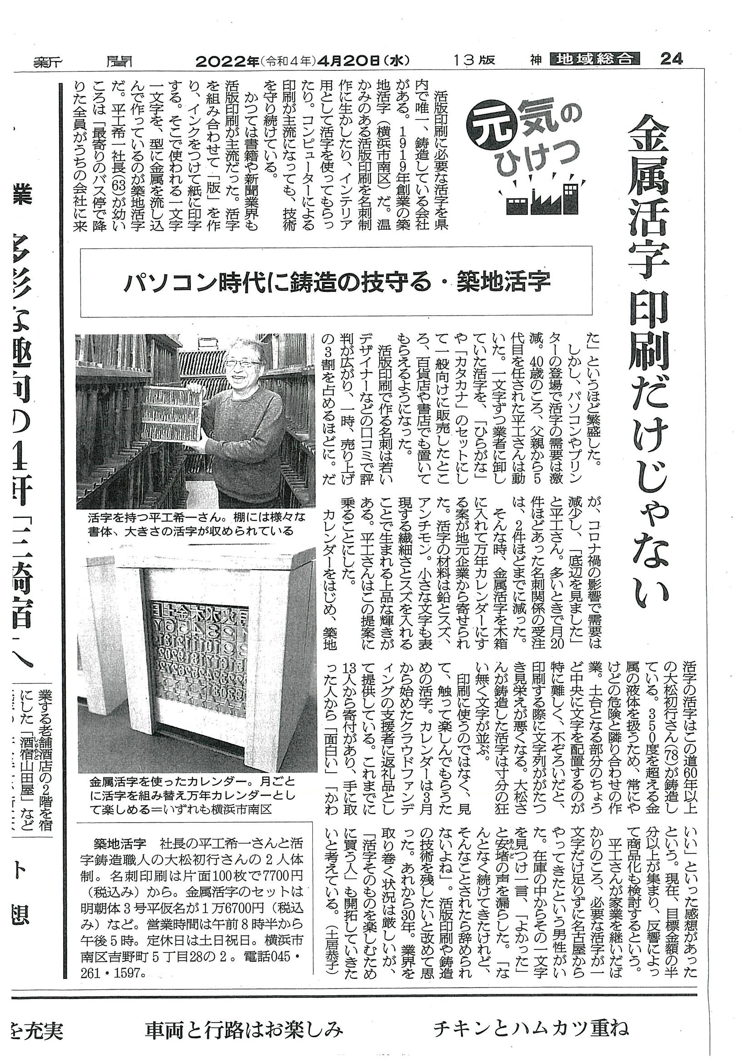 朝日新聞様からプロジェクトメンバーの株式会社築地活字が取材いただき、その中で活字カレンダー「KARAKURI」の事も取り上げていただきました。詳しい記事は字心HPをご覧ください。https://jigocoro.net/news012.html引き続き皆様のご支援をいただけますと幸いです。