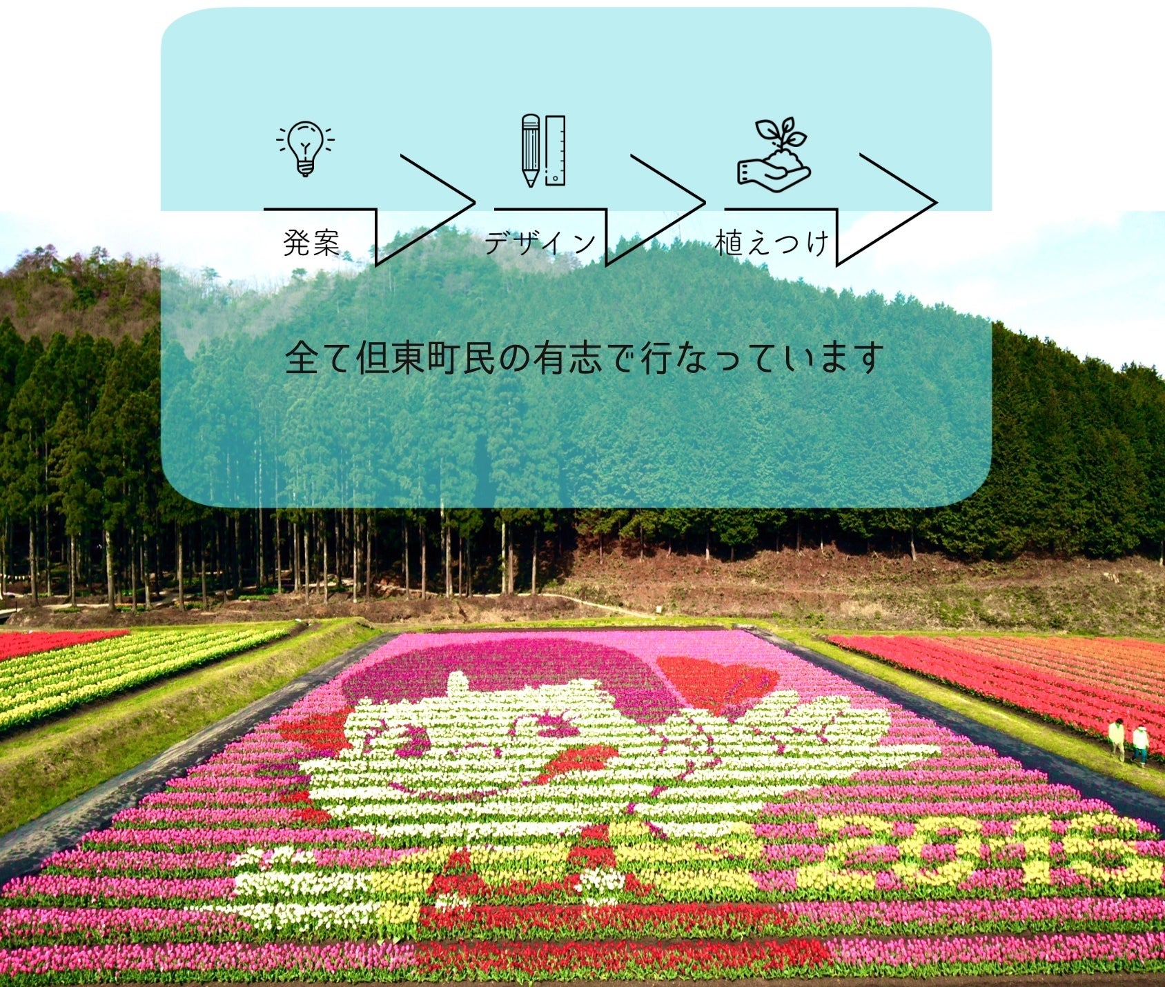 但東町民自らの手で大切に育てられたチューリップ100万本が見事に咲き誇り、