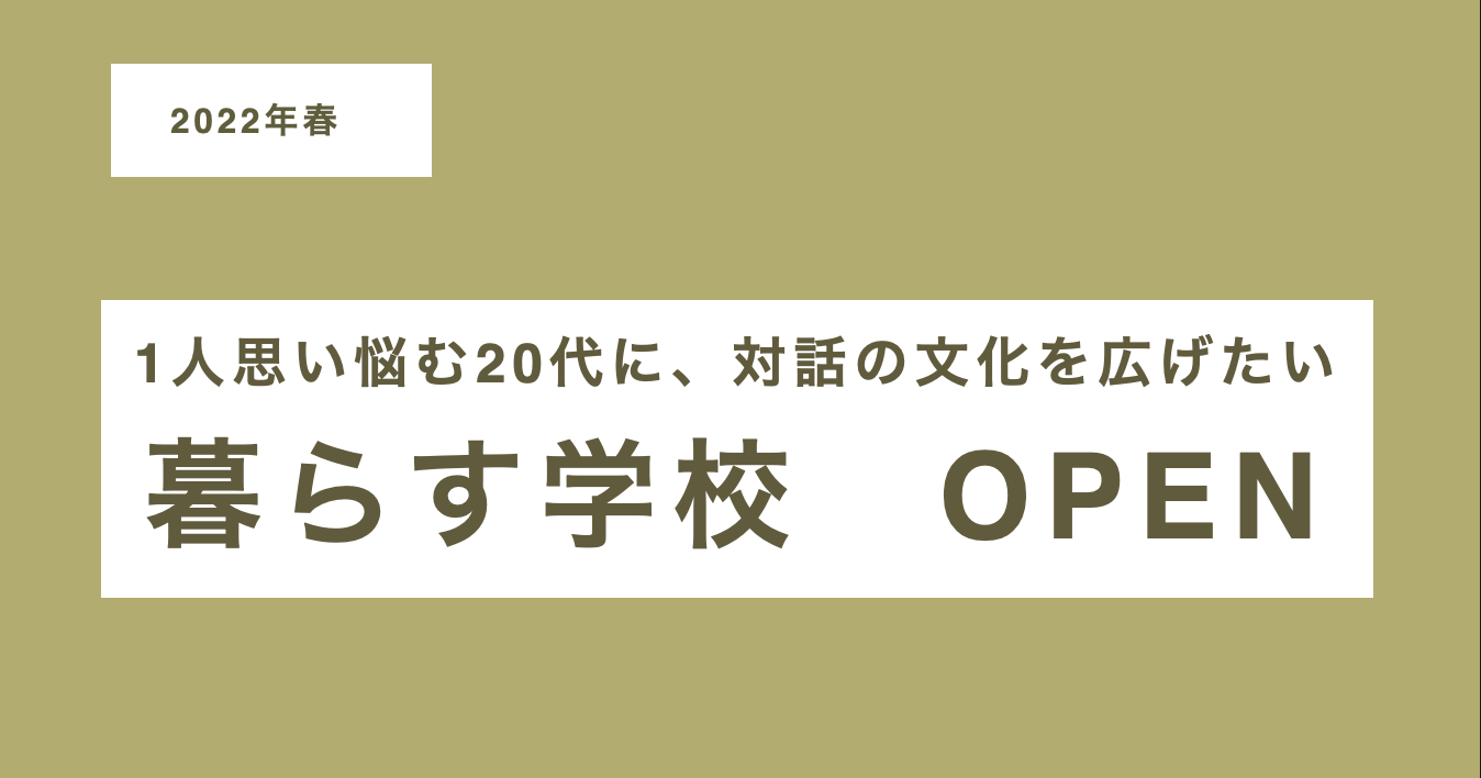 ひとつは、暮らす学校に参加した20代ひとりひとりが、学業や仕事と両立しながらただ1人の人間として、質の高い傾聴/共感を得られる状況を作ること。もうひとつはこのプロジェクト・活動を通して若者が自分たちの現状を知り、人生について考える機会がインフラのように敷かれた世の中になることです。