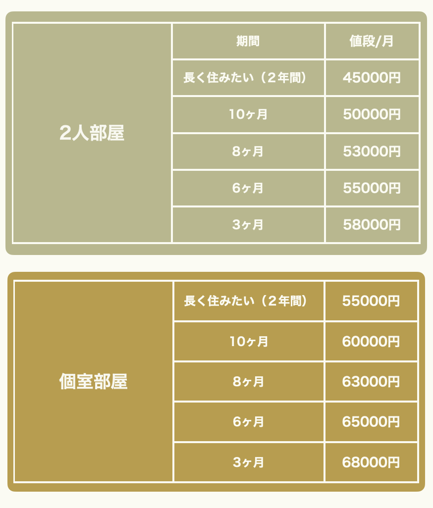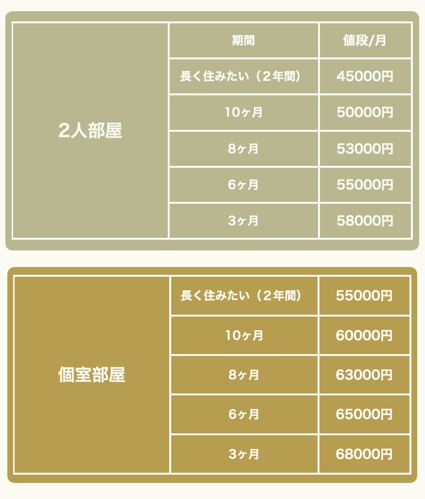 自身で3−24ヶ月と希望する滞在期間を選べるようにしています。「自分の人生を考える機会」は人によって必要な期間がさまざまなためこのような形をとることにしました。