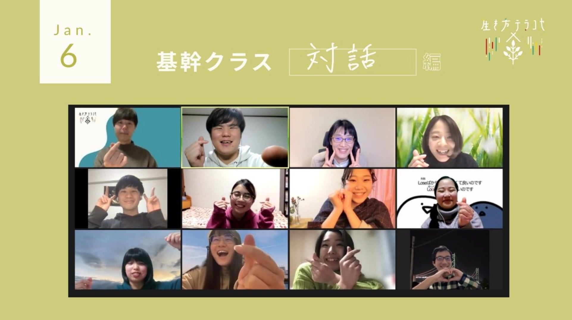 はじめまして、生き方を学ぶオンラインスクール「生き方テラコヤ」です。日本の現代を生きる全ての20代が人生について考え、心から願う生き方を歩める社会を目指し運営しています。対話やウェルビーイングについて学ぶ機会をインフラのように得られることをビジョンにしています。