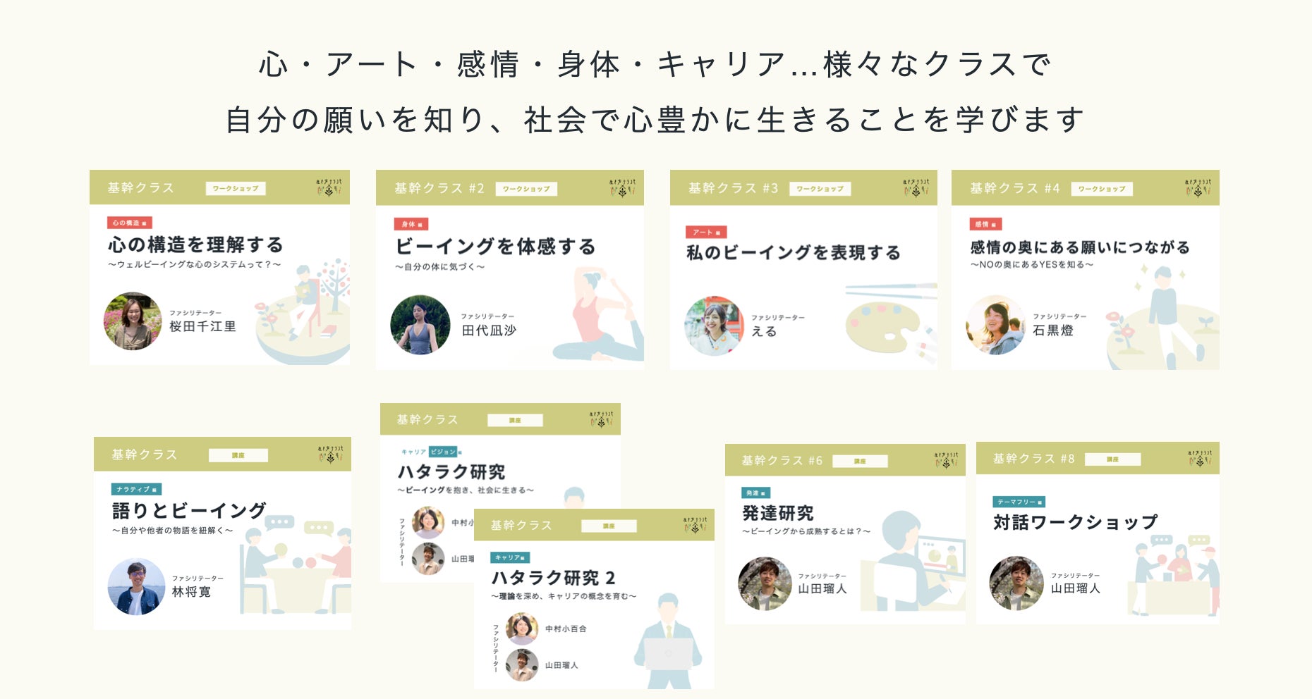 そのため私たちは20代が規範や将来の不安、恐れに縛られ生きるのではなく、自らの心を育てながら豊かに生きること、さらにしなやかに他者、社会と関わることを目指してスクール運営を行っています。