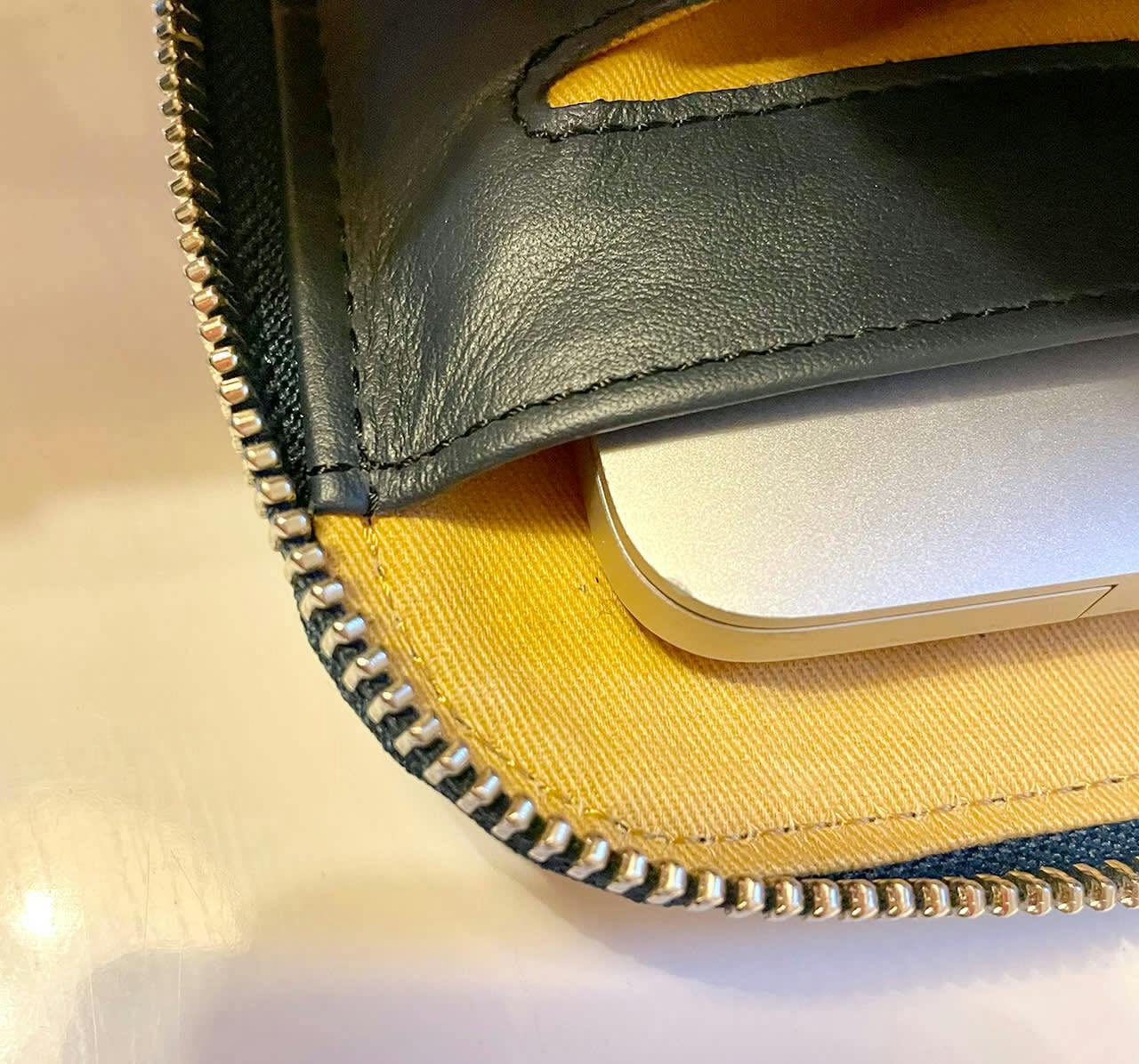 画像でもお分かりいただける通り、13インチのMacBook Proを入れたところ、左側に約1cmほどの隙間があります。
