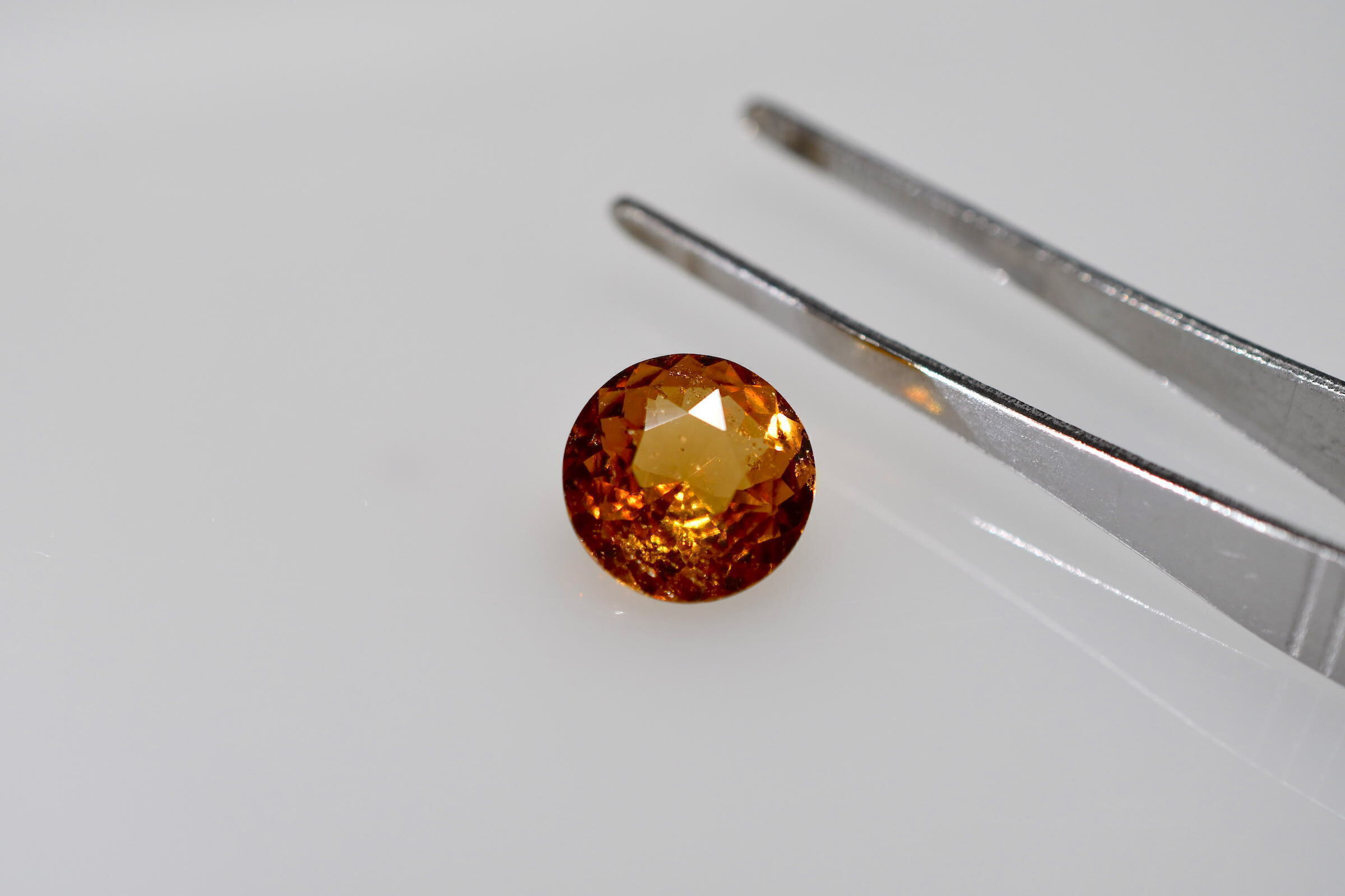 ガーネットには種類がたくさんありますが、その中でも糖蜜状組織(トリークル)の内包物が特徴です。ブラウン、オレンジ、ゴールドなど色も多様ですが、特にゴールドはトリークルがキラキラ感を一層引き立て独特の美しさを醸し出します。