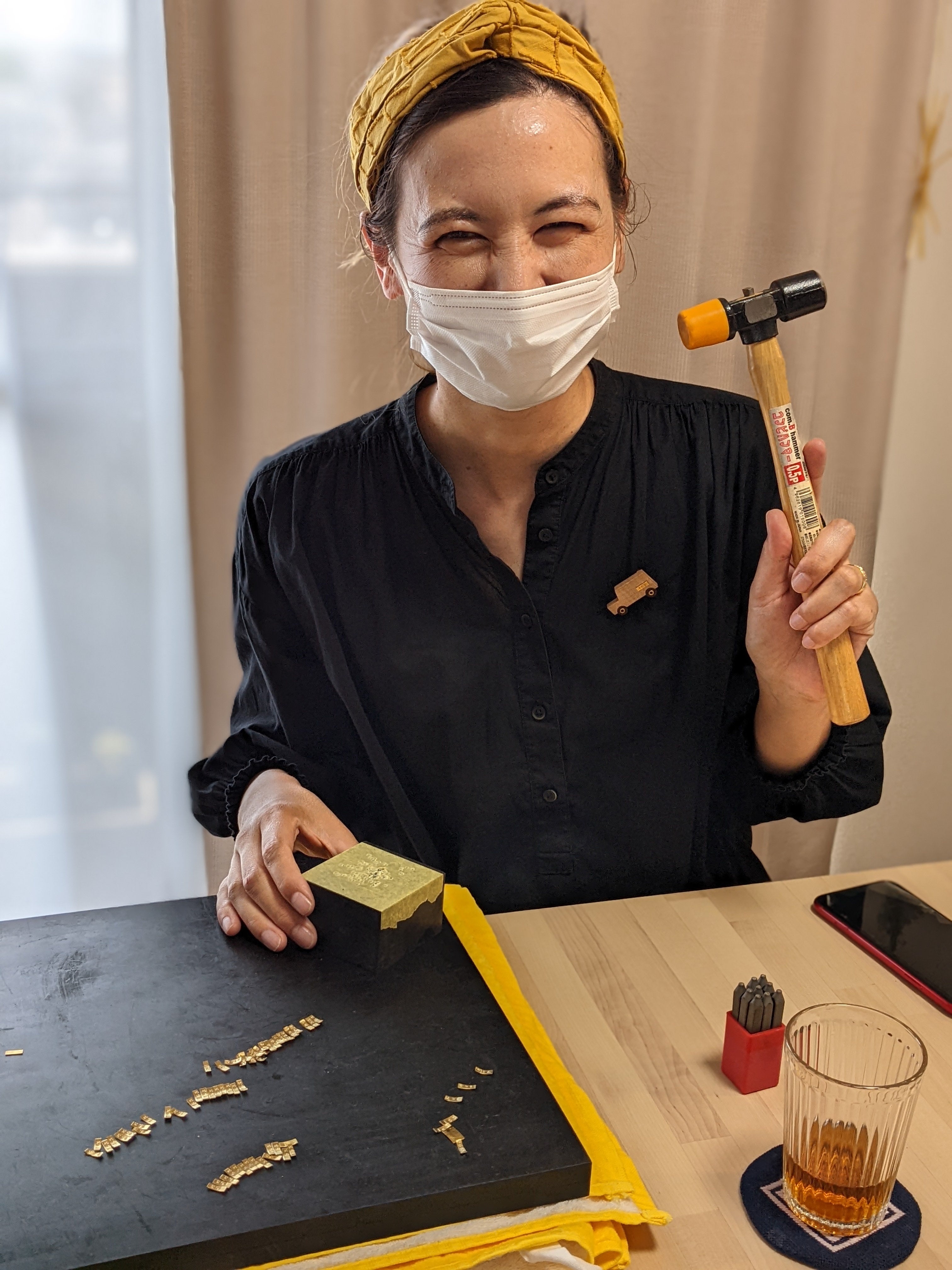 続いてはR153下道ブローチ!ライターとしても参加してくれているmiyao naomiちゃんの作るかわいい木のブローチのリターンも大人気でした。このブローチに刻印を打つ役目を担ったわたし、先日作業をしてまいりました。