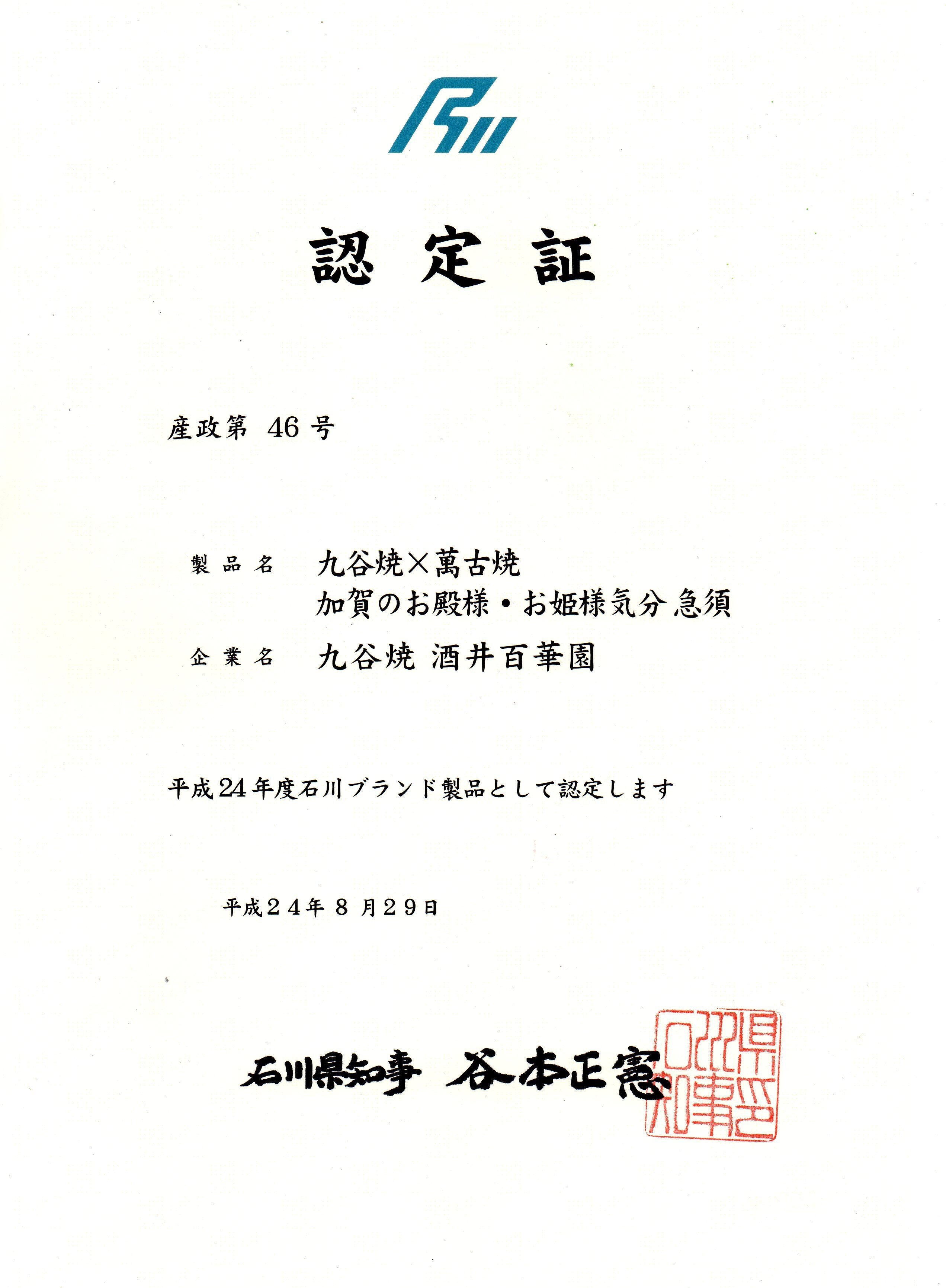 弊店、九谷焼酒井百華園は昭和21年創業し祖父の代からずっと九谷焼を製造し販売しております。