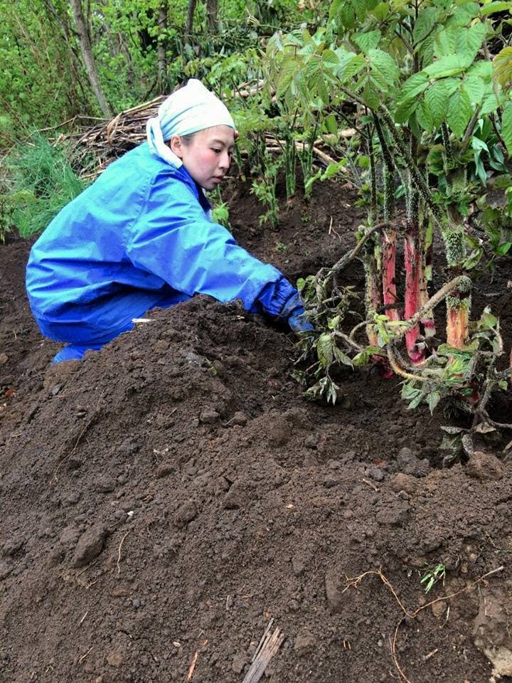 天然の山ウドのように生えてきたウドに土をかけて伸ばしていくので