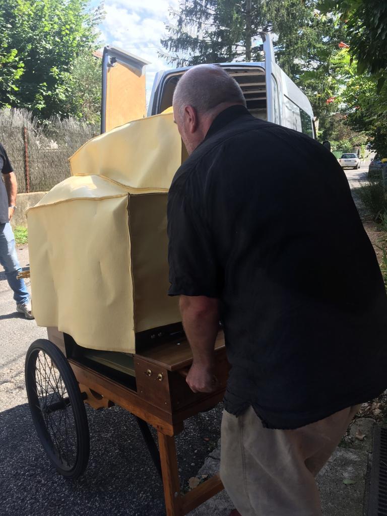 ついに、手回しオルガン、完成したようです!!!本日、何回かに分けて支払いをしているのですが、最後の送金が終わりました。工房から運び出す写真を送ってくれました!いよいよ、日本にやってきます!!!楽しみです!!!!