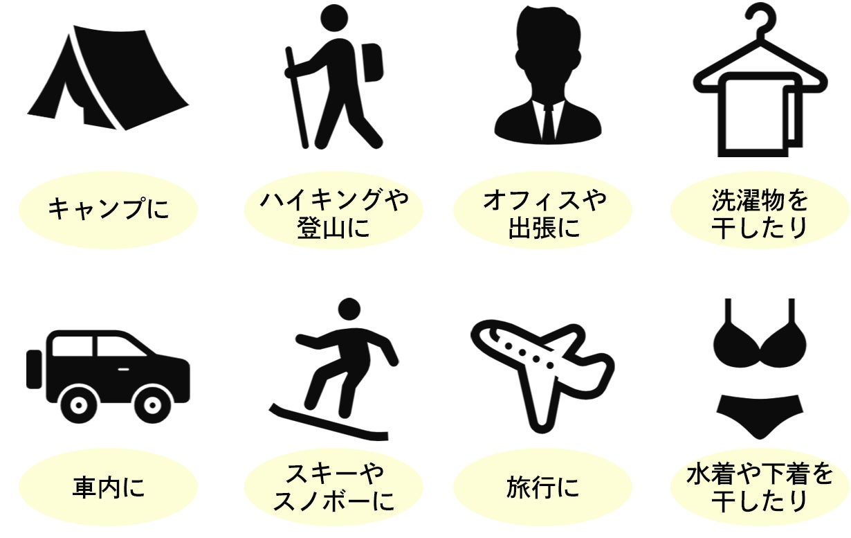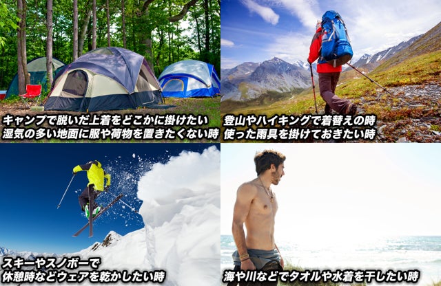 キャンプだけでなく、スキーやスノボーで濡れたウェアを乾かしたい時、