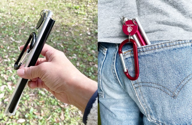 スティック状だからズボンのポケットやリュックの隙間にスッと差し込めます。