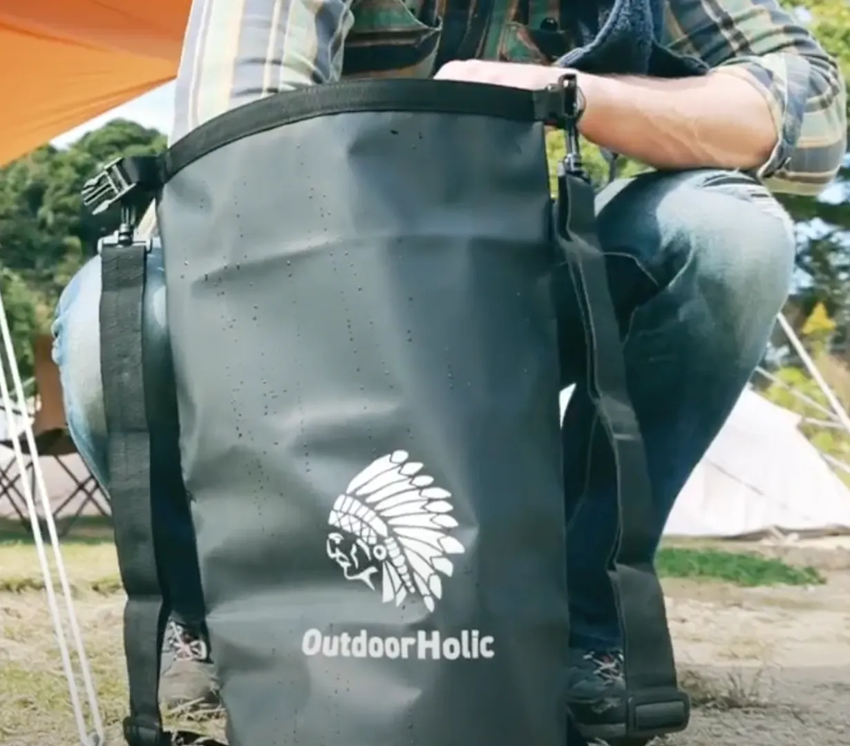 番外編?!ちょっと意外でお勧めの使い方として、洗濯する際の便利グッズとして使うこともできます。とても簡単で、ドライバッグに汚れた衣類と水を入れ、口を閉じてシェイクするだけ。シェイクすることでバッグの中で水流が起こり、洗濯機のように汚れを落とすことができます。勿論バッグをバケツがわりにしてジャブジャブ手洗いもできます。