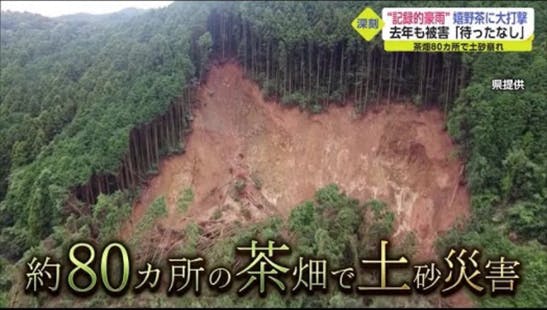 2021年8月、西九州で発生した大雨は佐賀県嬉野市に降雨量1,000ミリ以上をもたらし、その結果、大規模土砂災害が発生。茶畑に大きな被害をもたらしました。
