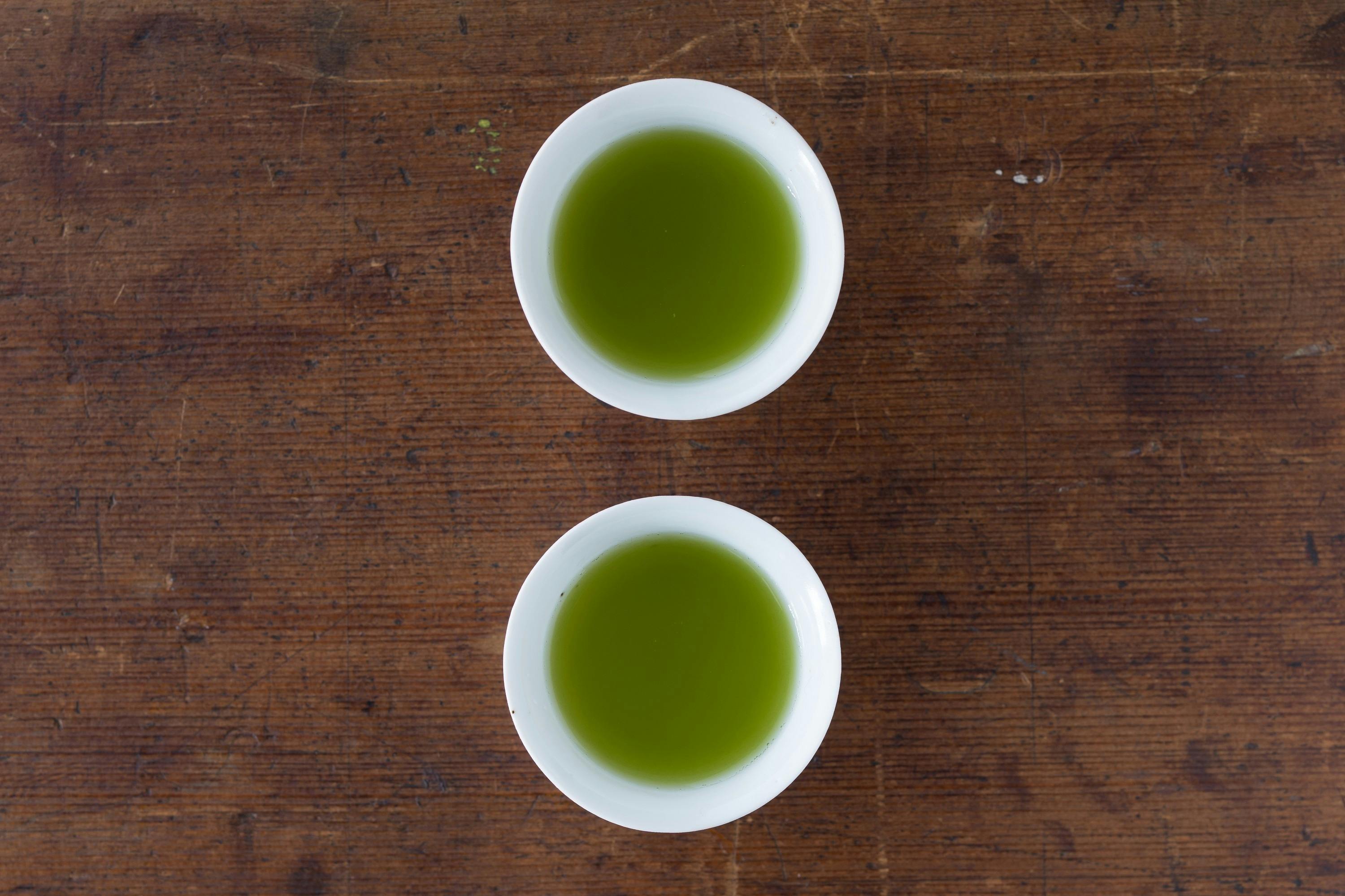 他の産地の茶葉と大きく異なる点は、茶葉の形が「ぐるっ」と丸まっている点。「むしぐり」「玉緑茶」とも呼ばれ、濃い緑色の色艶があり、香り高く、すっきりとしたコクのある旨みは何杯でも飲みたくなると言われます。茶葉が丸まっているため、一般の茶葉より味が続くのも特徴です。