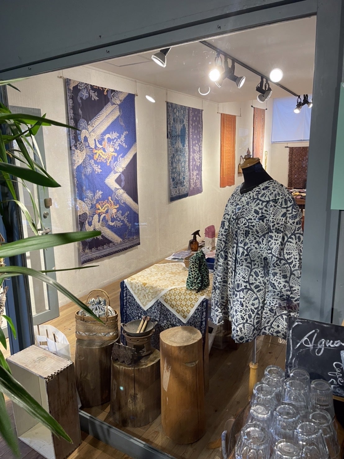 インドネシア各地の上質なバティックのコレクションが展示されるほか、イカットやお洋服、小物などの販売も行っています。