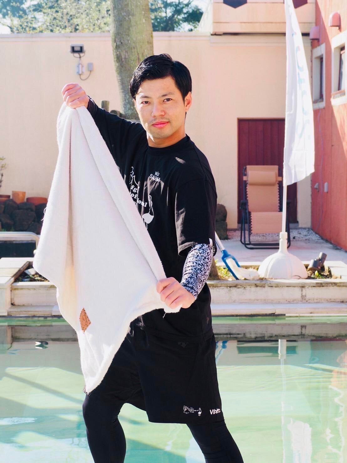 タオル飛ばし系の回転技を得意とする一面、サウナ室を真っ暗にして瞑想×キャンドルと丸の内OLや意識高い系が好むアウフグースをし脳の活性化を図るようなアウフもするが、当の本人はサウナ室内で人を楽しませることを好むみたいだ。お客様が笑うことで呼吸が深くなり内臓の動きを活発にさせることが狙いの「笑(ショウ)アウフグース」は必見。