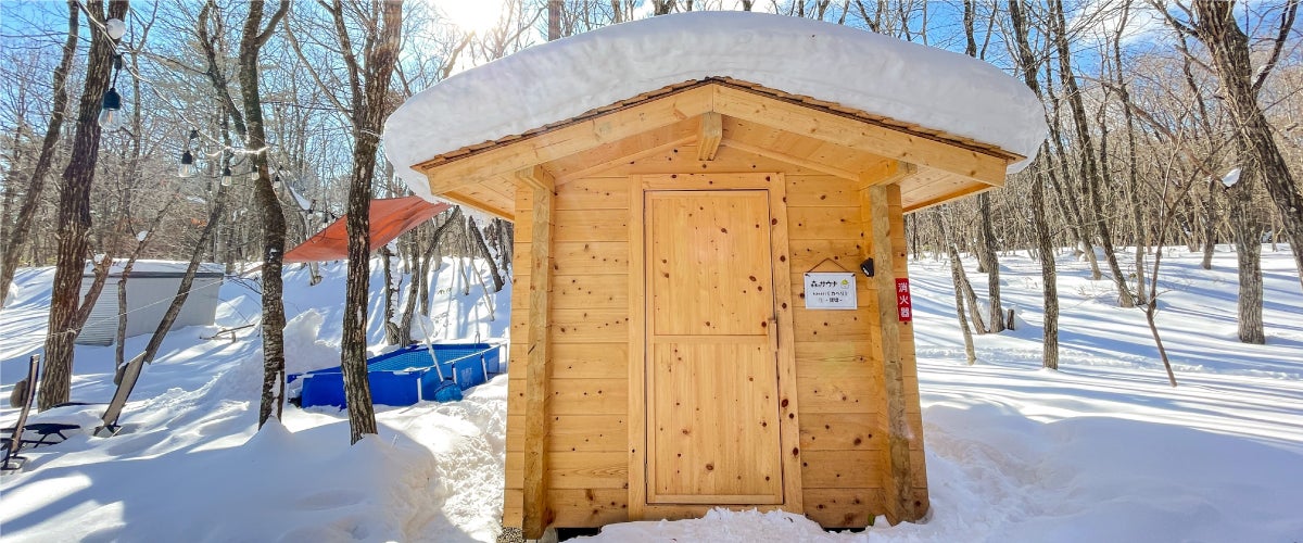 先ずは環境。福島では珍しい森のサウナ「kaveri」の体験はもちろん、テントサウナをご用意しました。そして重要な水風呂はエンゼルフォレスト敷地内の地下水を使用します!!