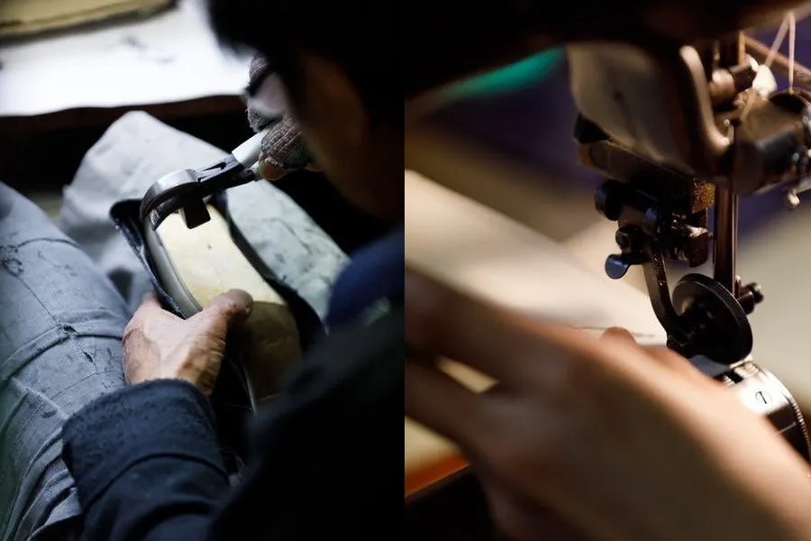 丁寧に一足ずつ職人がミシンで縫い、製造しています。
