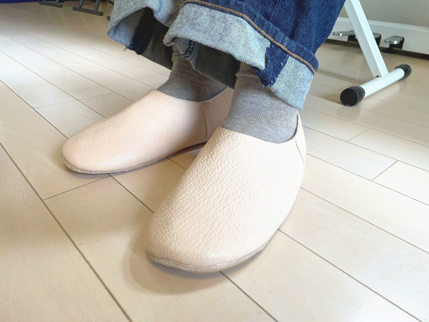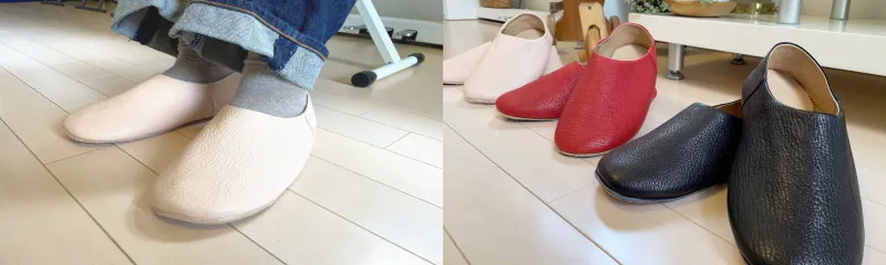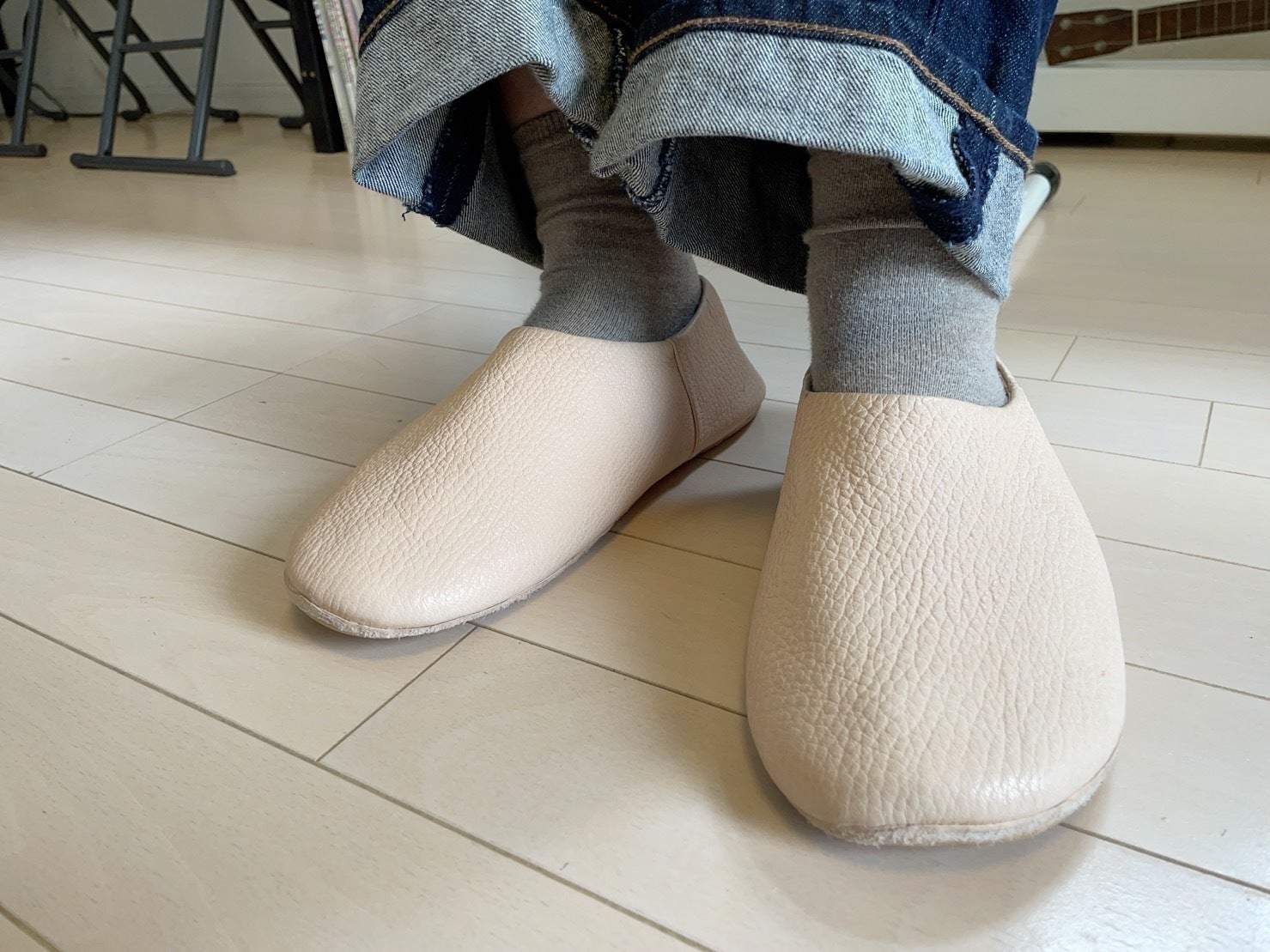ジビエレザーのバブーシュの最大の特徴はその履き心地で、